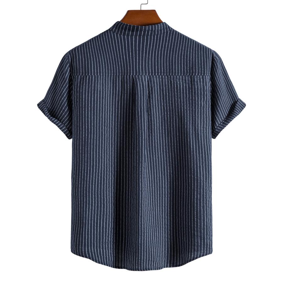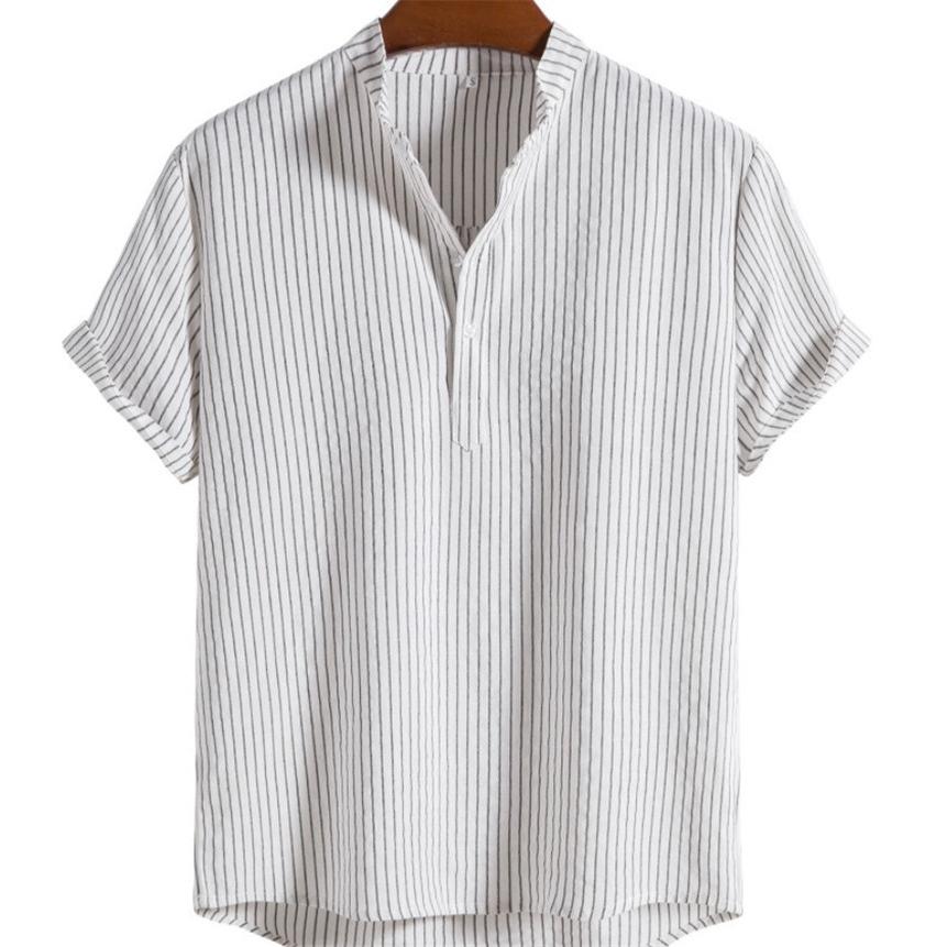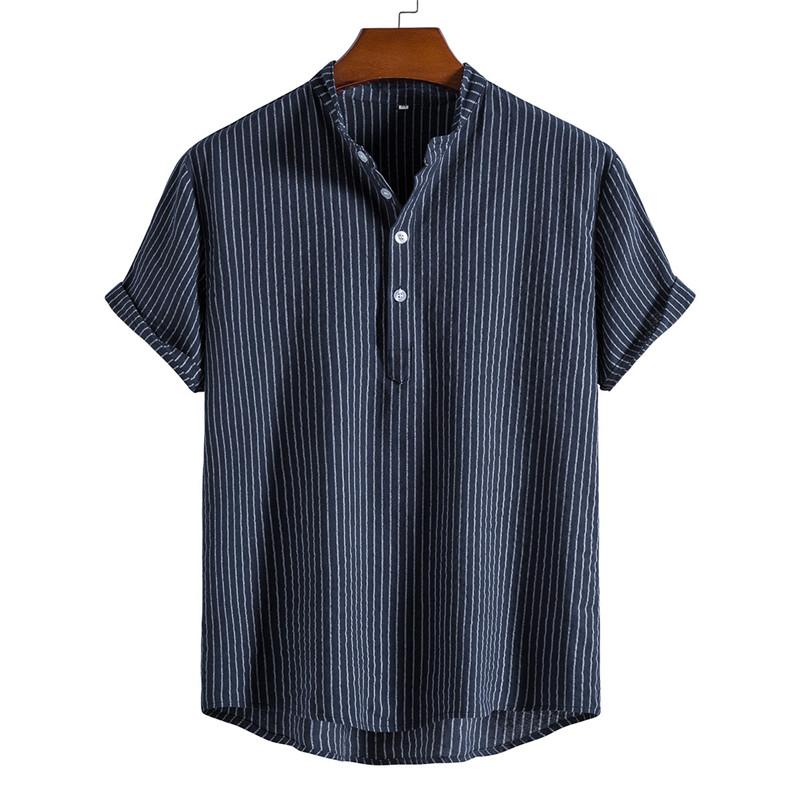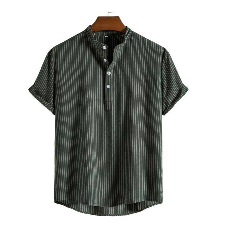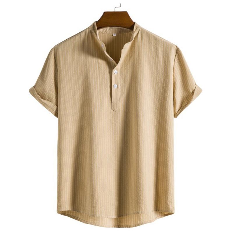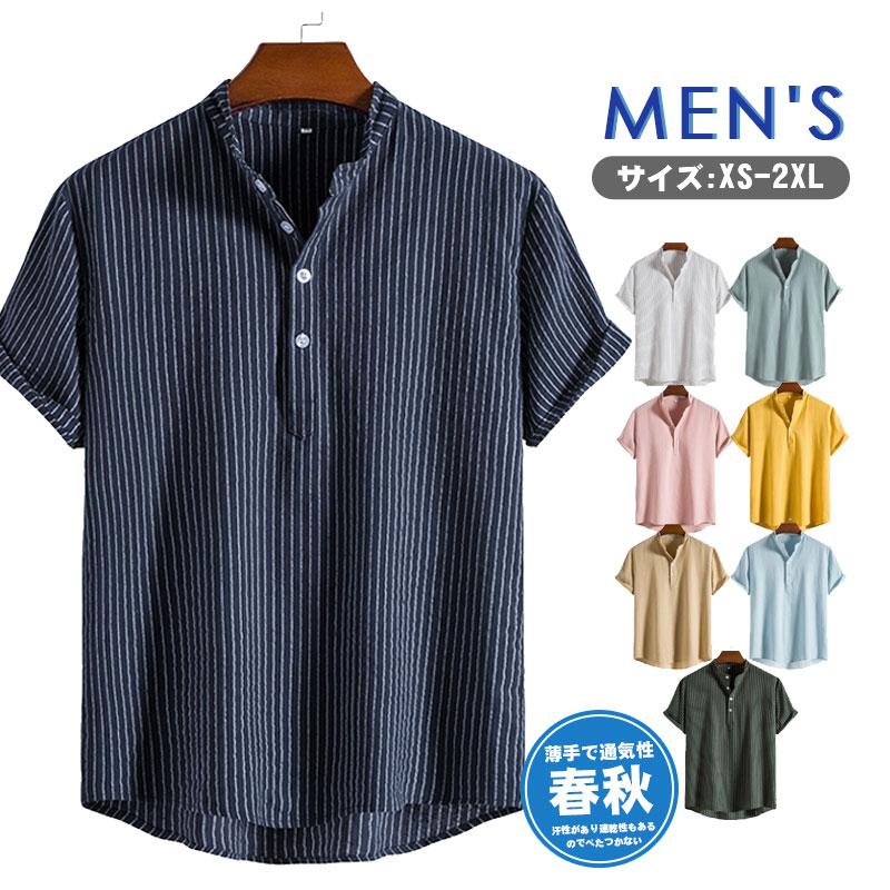 ポロシャツ ゴルフ メンズ 半袖 スポーツ ストライプ リネン 立ち襟 トップス 麻 無地 カジュアル ゆったり アメカジ 綿 ビジネス シンプル