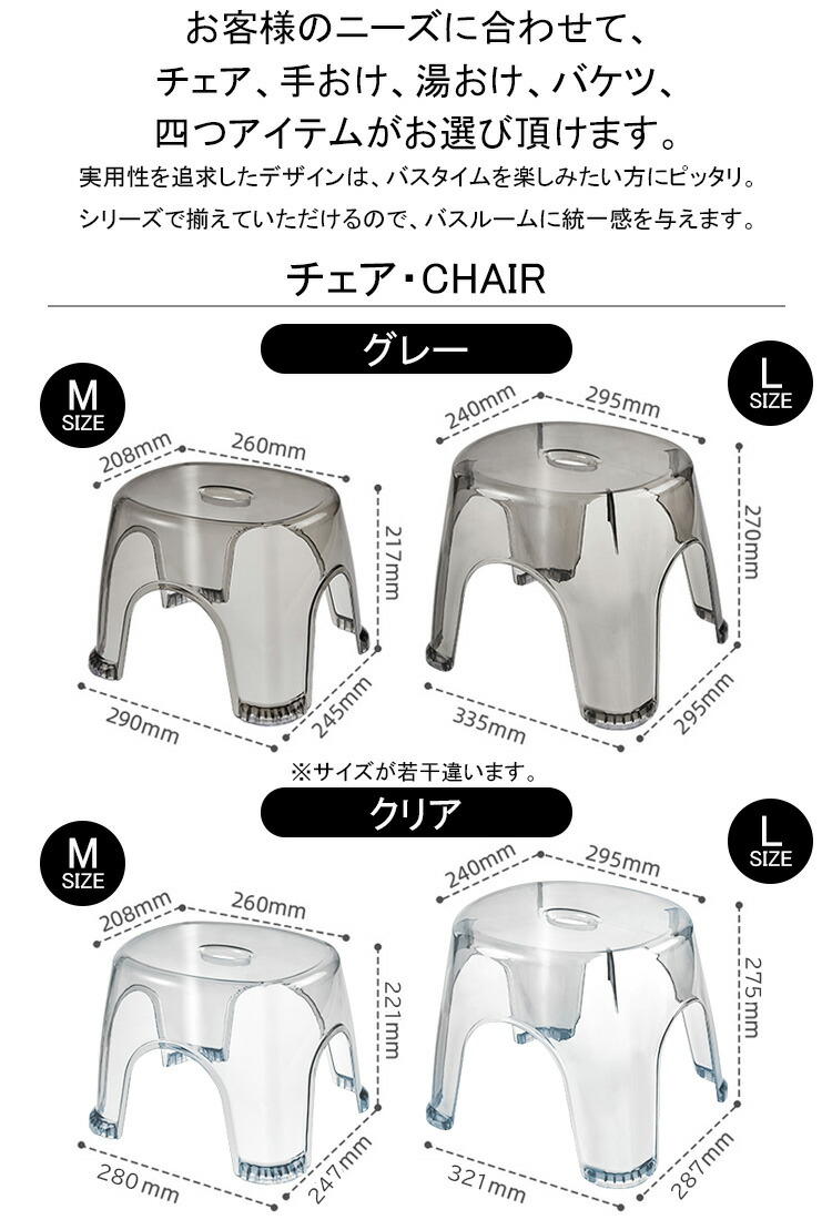 最新版 注文殺到中 再再再入荷 お風呂 バス用品 イス 新登場! チェア[グレー] - Mサイズ チェア[グレー] - Lサイズ チェア[クリア] - Mサイズ チェア[クリア] - Lサイズ バケツ[グレー] バケツ[クリア] 湯おけ - Sサイズ 湯おけ - Mサイズ 湯おけ - Lサイズ 手おけ[グレー] 手おけ[クリア]