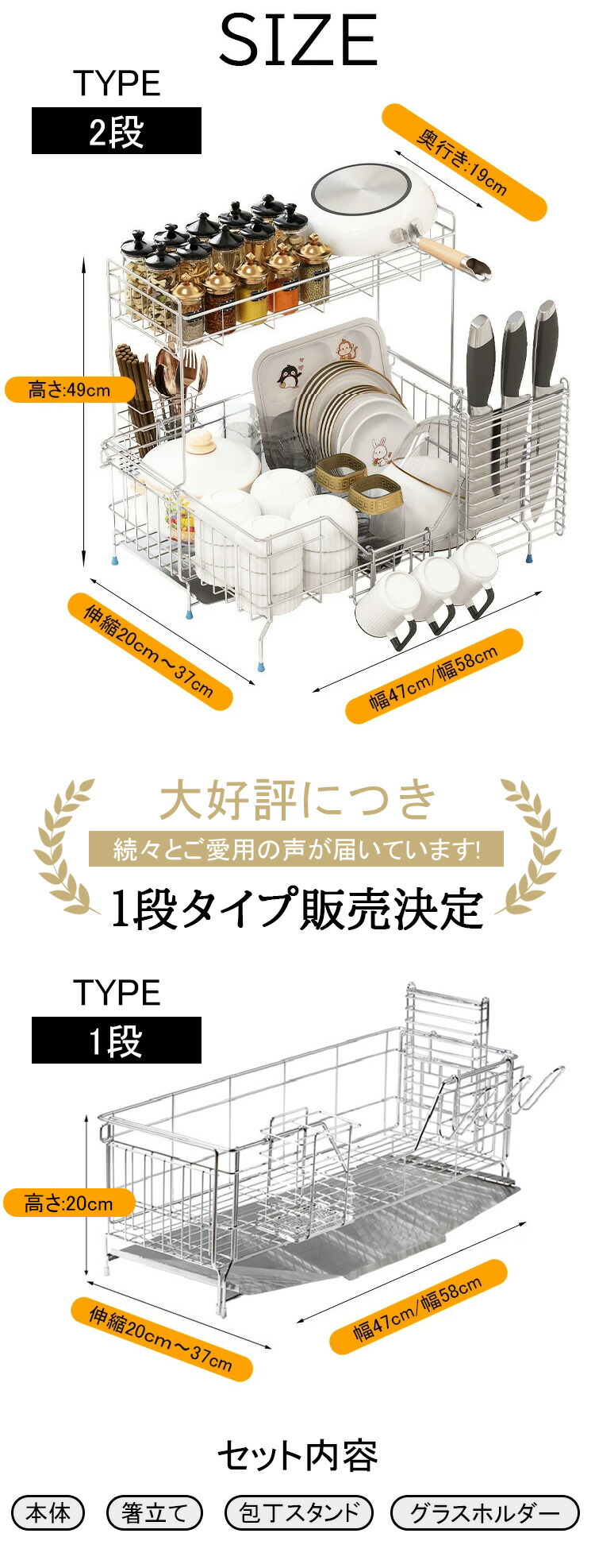 Newタイプ販売決定 二段式+伸縮ワイ キッチン用品 食器 調理器具 超目玉商品 1段 2段 47cm 58cm