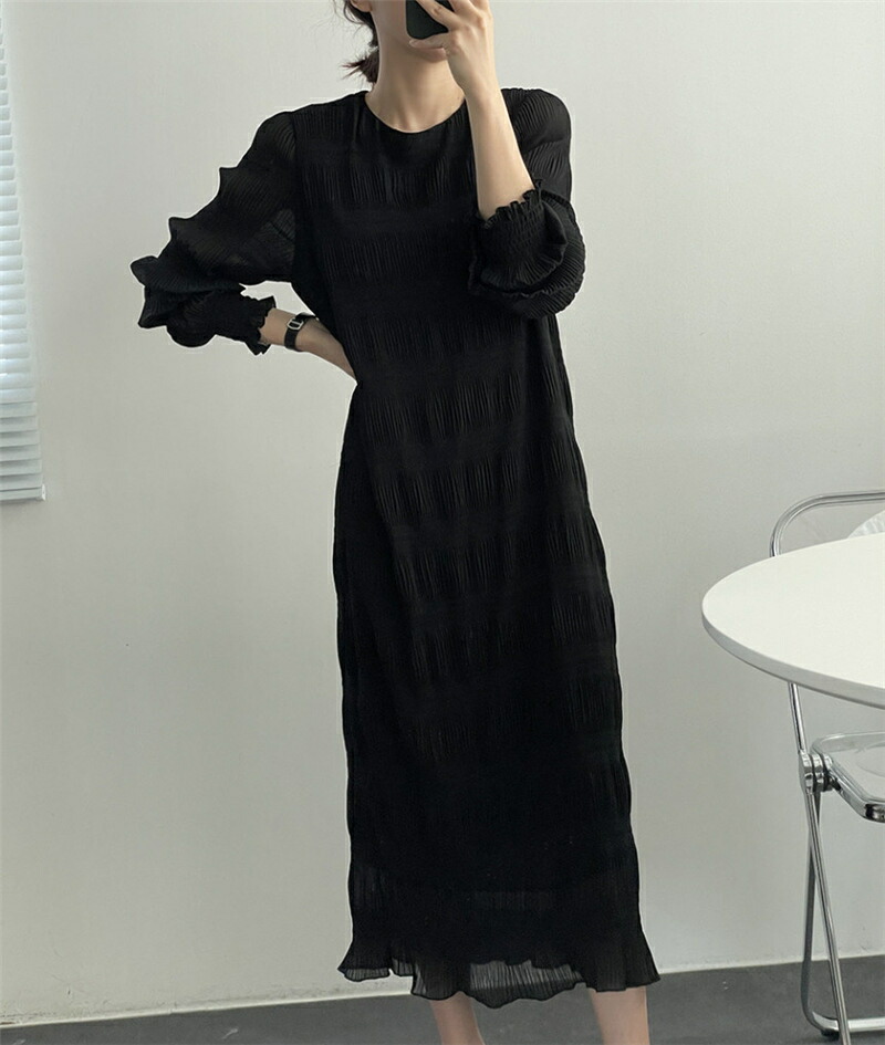 ワンピース 長袖 レディース シンプル レディースファッション 超目玉商品 杏色 ブラック