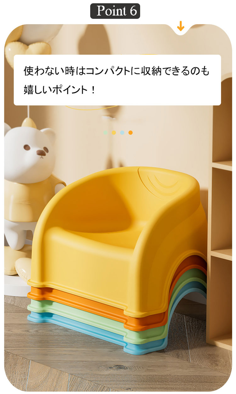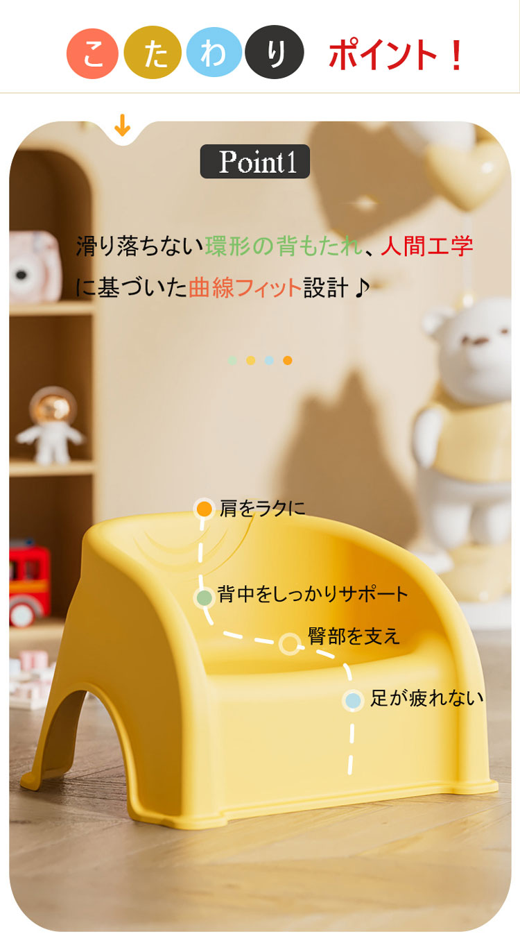 背もたれ付きローチェア キッズ 子供 オレンジ イエロー グリーン ブルー