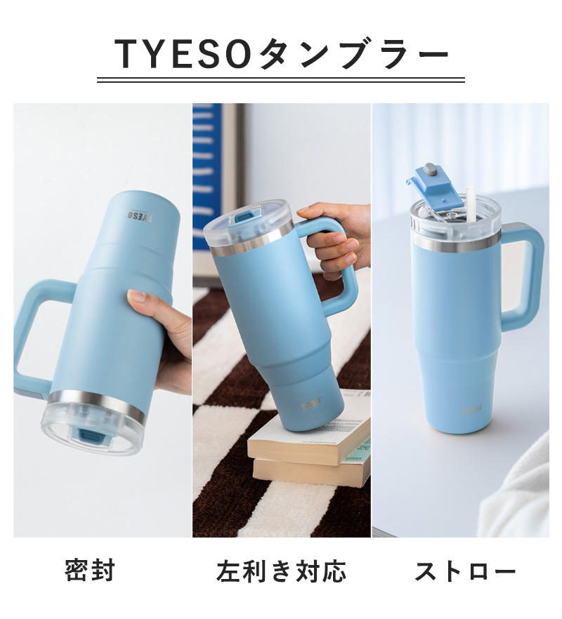 TYESO タンブラー ストロー付き 弁当箱 水筒 水筒 マグボトル 通販 ローズレッド レイクブルー グリーン ホワイト ライトカーキ オレンジ パープル モカブラウン イエロー ミントグリーン スカイブルー ピンク グレー ミュートピンク クラインブルー ブラック 900ml 1200ml