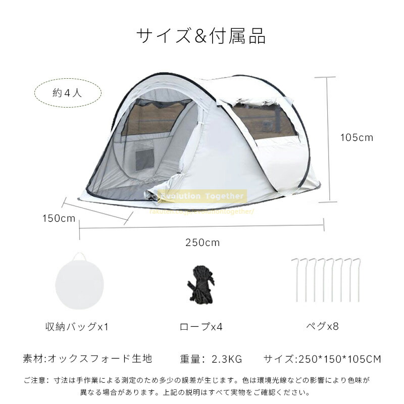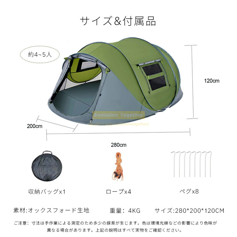 3秒設置ポップアップ テント5 ~8人 スポーツ アウトドア 人気 シルバーグレー(280x200x120cm) グリーン(280x200x120cm) ベージュ(250x150x105cm)