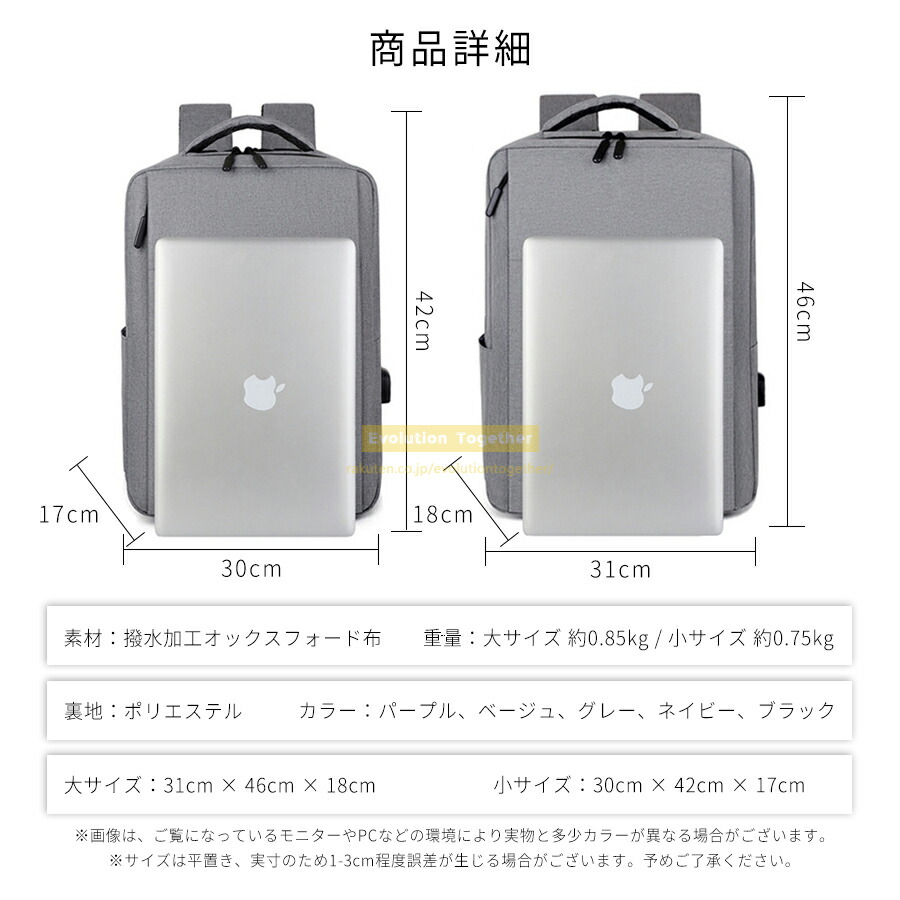 ビジネス リュック 通勤 レディース バッグ 男女兼用バッグ バックパック リュック 豊富 パープル ベージュ グレー ネイビー ブラック 大サイズ 小サイズ