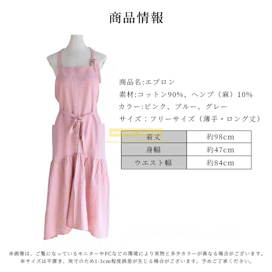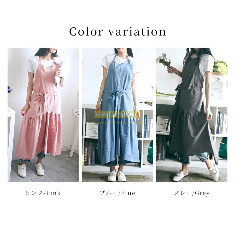 エプロン レディース ドレス おしゃれ キッチン用品 食器 調理器具 超目玉商品 ピンク ブルー グレー ポケット付き ポケットなし