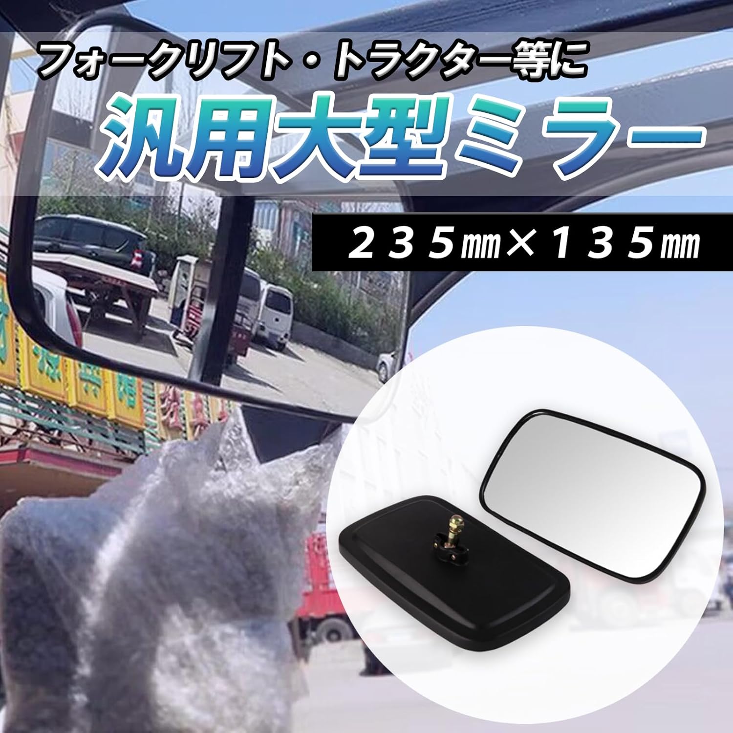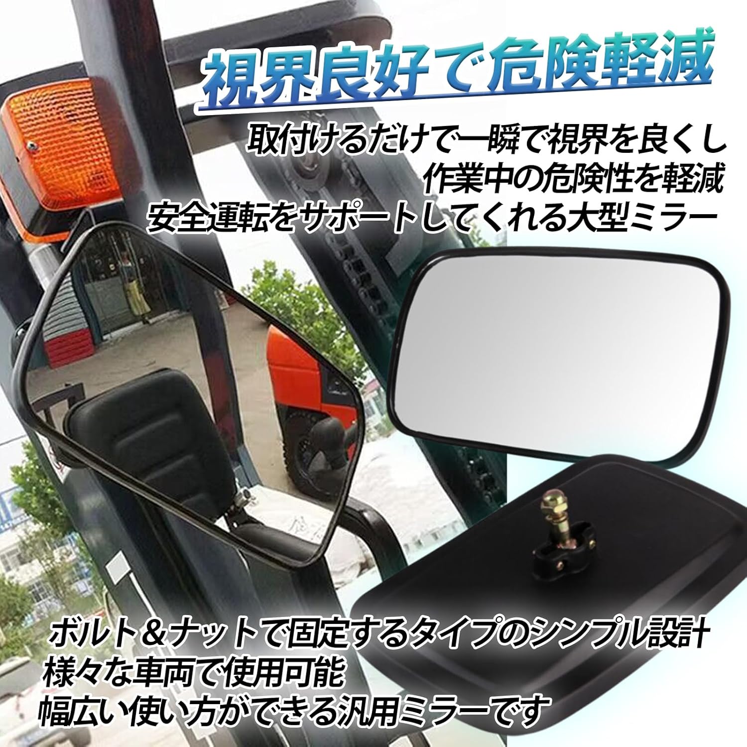 トラクター ミラー 汎用 フォークリフト トラクター用大型サイドミラー 235mm×135mm 簡単取付 360度回転 バックミラー サイドミラー 補助ミラー 建機 重機対応 車 農機