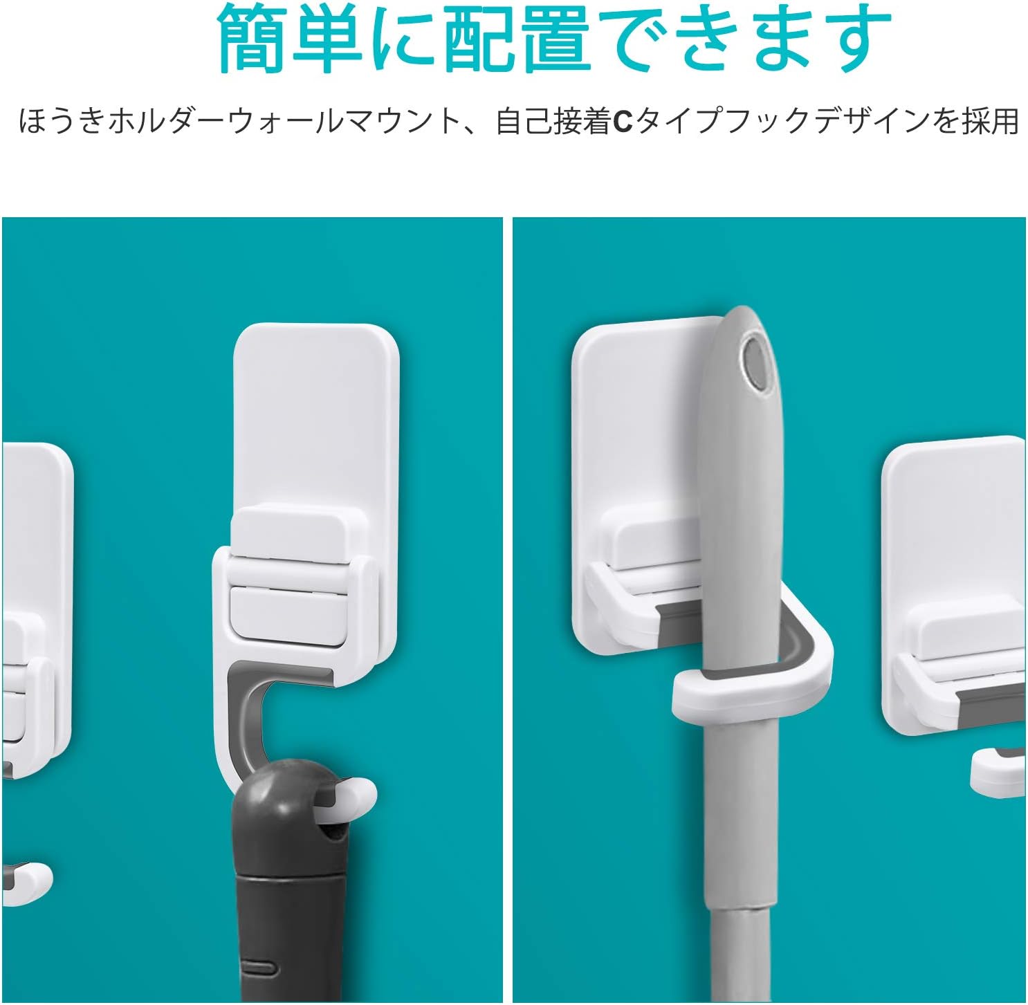 ほうきホルダー 穴あけ不要 壁掛けフック 粘着強力 ほうき&モップグリッパー モップホルダー モップ収納 ホルダー収納多機能 トイレ収納 家庭用品 傘立て キッチン ガレージ オフィス 玄関 お風呂