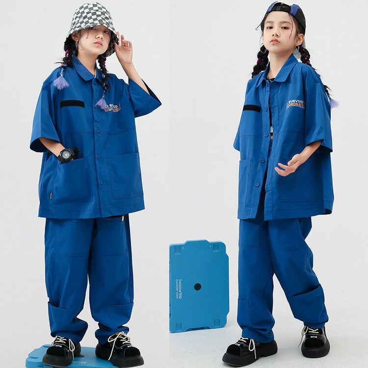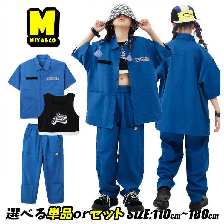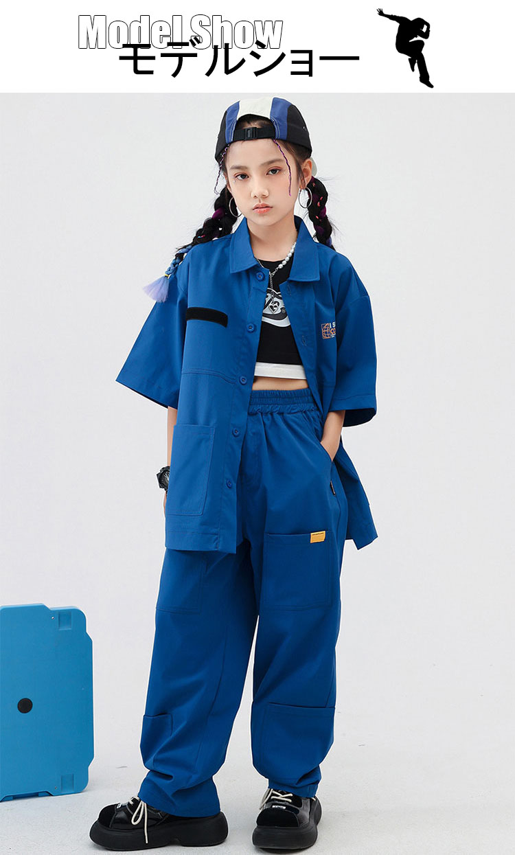キッズダンス衣装 セットアップ 青 ヒ キッズ ベビー マタニティ 早い者勝ち ハーフトップ パンツ シャツ 2点セット 3点セット 110 120 130 140 150 160 170 180