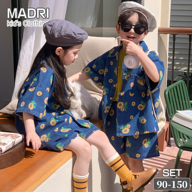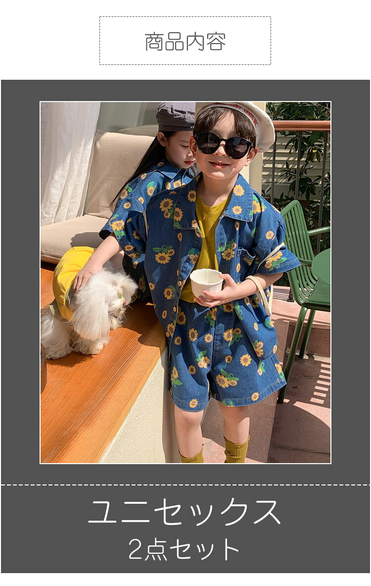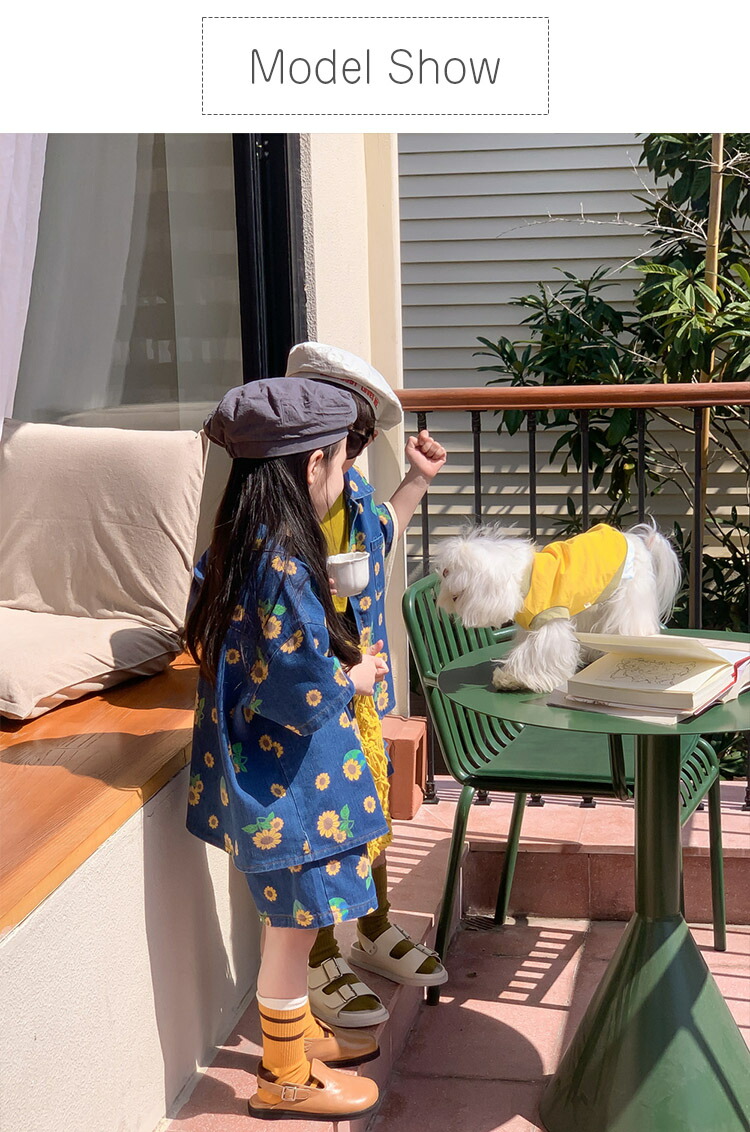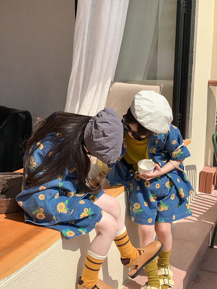 総柄 ひまわり デニム 韓国子供服 ユ キッズ ベビー マタニティ 続々登場 90 100 110 120 130 140 150