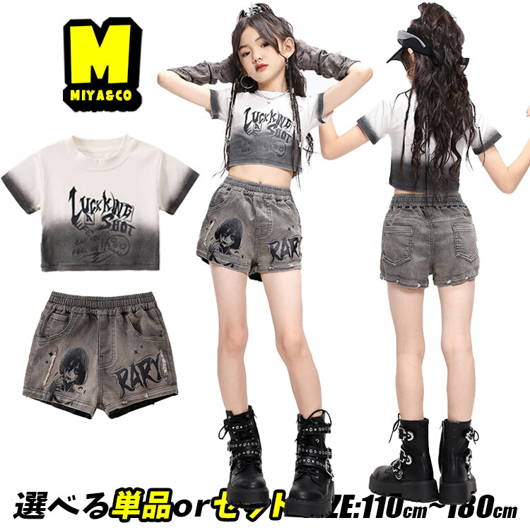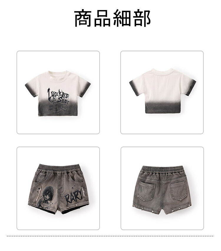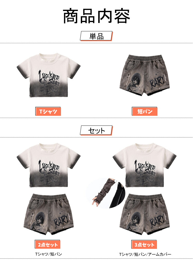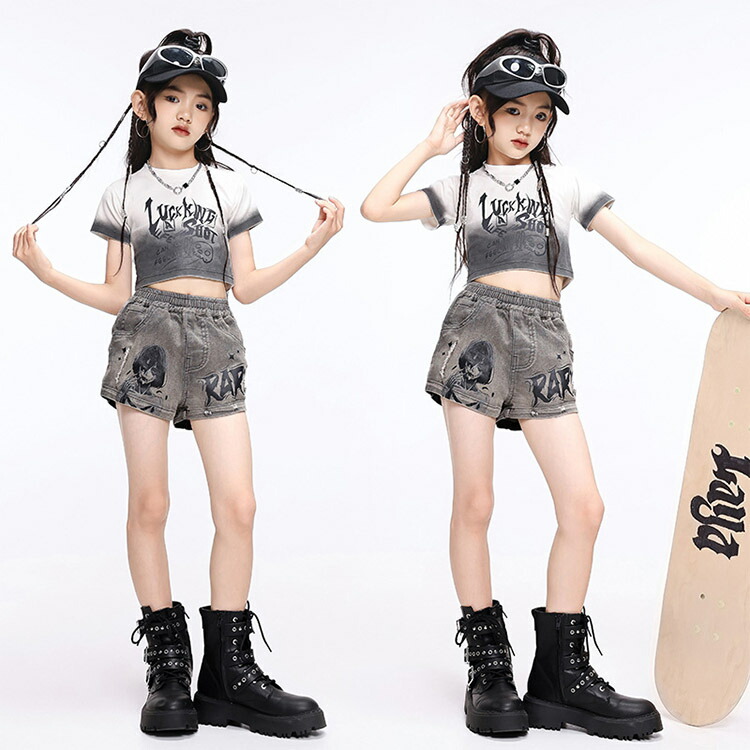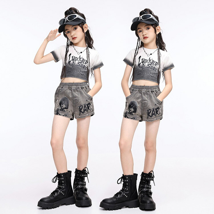 女の子 キッズダンス衣装 セットアップ キッズ スーツ カジュアルセットアップ カジュアルパンツセット 続々登場 ショートtシャツ デニム短パン 2点セット 3点セット 110 120 130 140 150 160 170 180