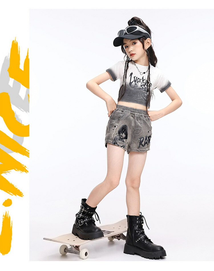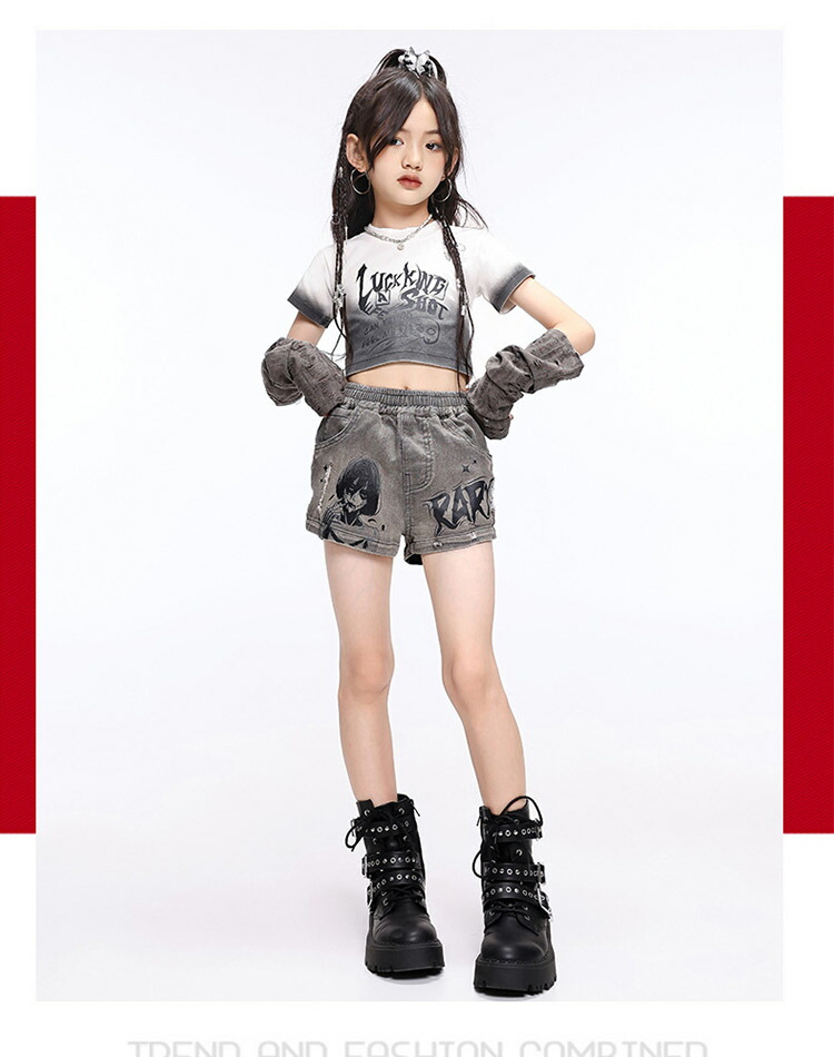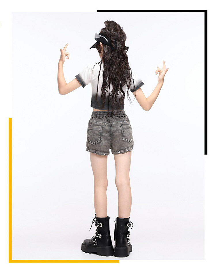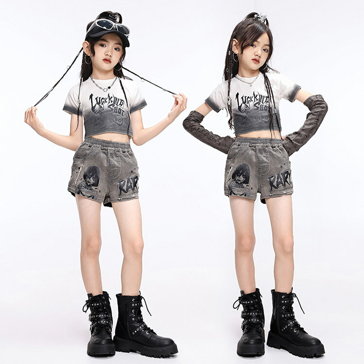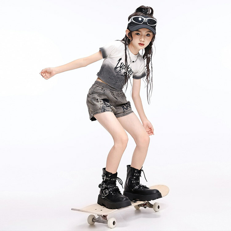 女の子 キッズダンス衣装 セットアップ キッズ スーツ カジュアルセットアップ カジュアルパンツセット 続々登場 ショートtシャツ デニム短パン 2点セット 3点セット 110 120 130 140 150 160 170 180