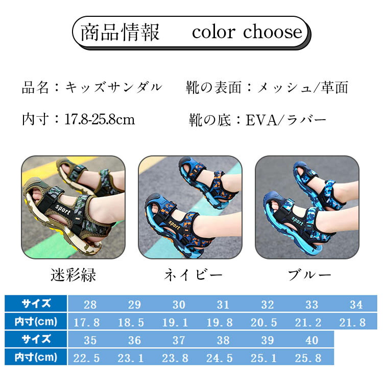 サンダル キッズ 子供 靴 スポーツサ キッズ ベビー マタニティ 早い者勝ち 28(内寸17.8cm) 29(内寸18.5cm) 30(内寸19.1cm) 31(内寸19.8cm) 32(内寸20.5cm) 33(内寸21.2cm) 34(内寸21.8cm) 35(内寸22.5cm) 36(内寸23.1cm) 37(内寸23.8cm) 38(内寸24.5cm) 39(内寸25.1cm) 40(内寸25.8cm) 迷彩緑 ネイビー ブルー