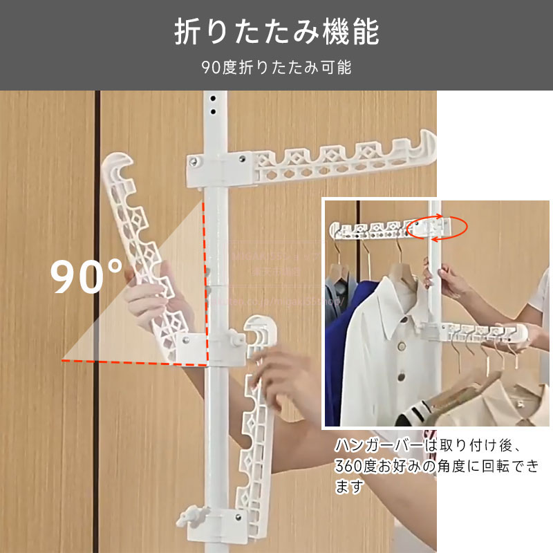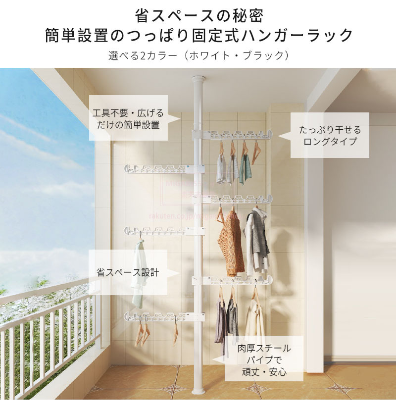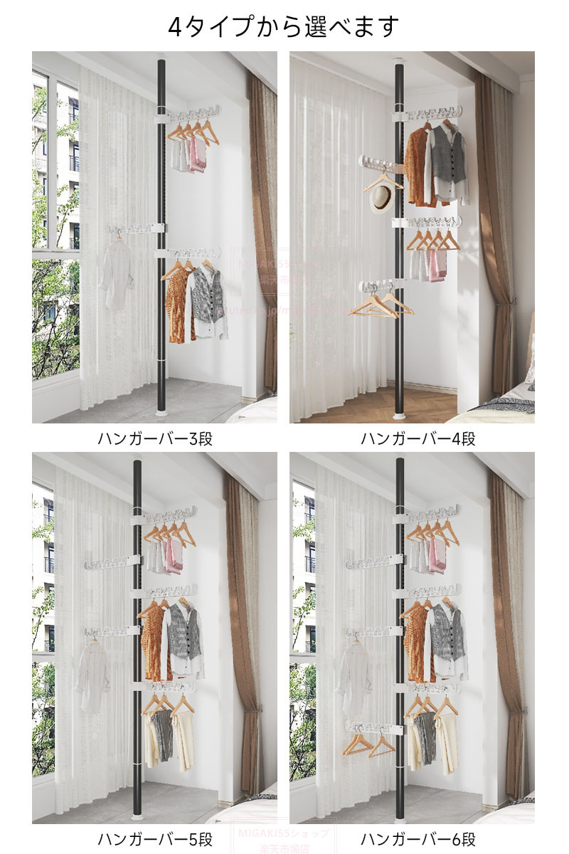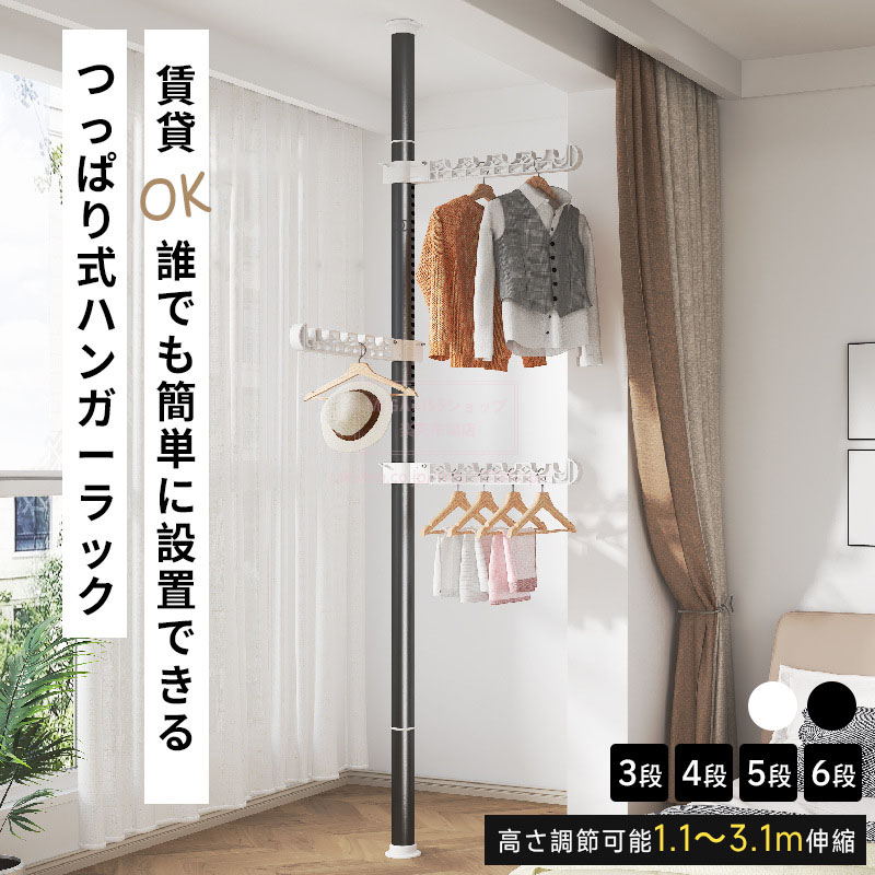つっぱり式ハンガーラック 3段 4段 ホワイト ブラック ハンガーバー3段 ハンガーバー4段 ハンガーバー5段 ハンガーバー6段