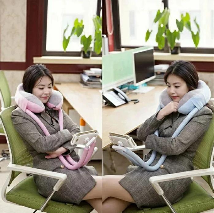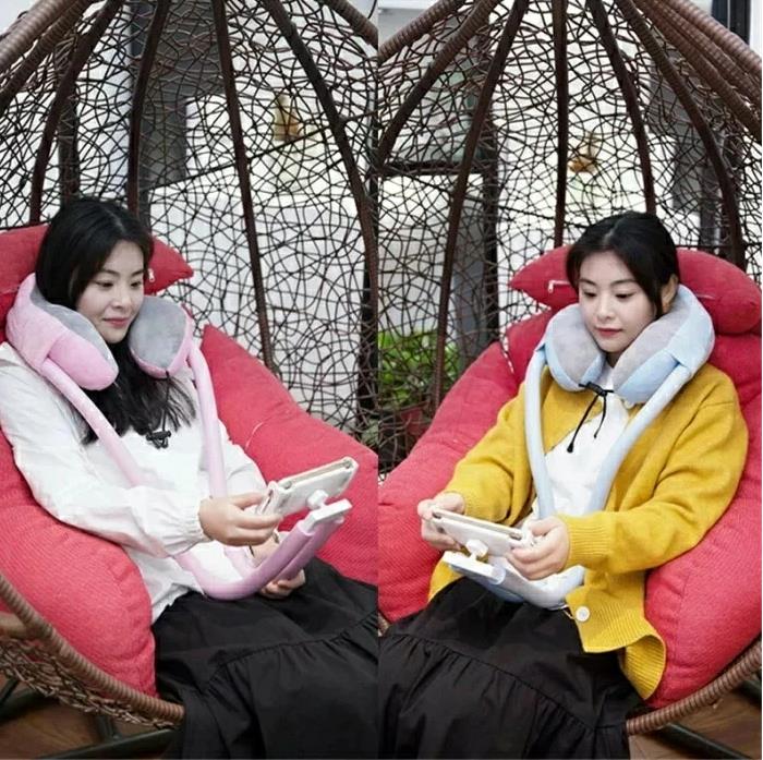 ネックスタンド 寝ながら 自撮り棒 首 スマートフォン タブレット 通販 ピンク ブルー