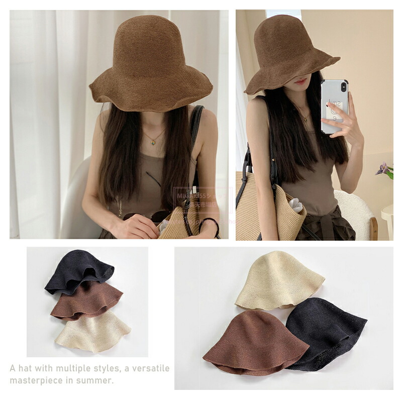 麦わらハット 帽子 UVカット レディ 帽子 レディース帽子 麦わら帽子 新作 ベージュ カーキ コーヒー ブラック 麦わらハット(8cmつば) 麦わらハット(10cmつば)