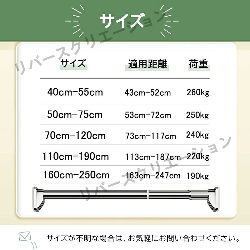強力突っ張り棒 つっぱり棒 ステンレス 洗濯用品 物干し竿 特集 シルバー ホワイト ブラック 40cm-55cm 50cm-75cm 70cm-120cm 110cm-190cm 160cm-250cm