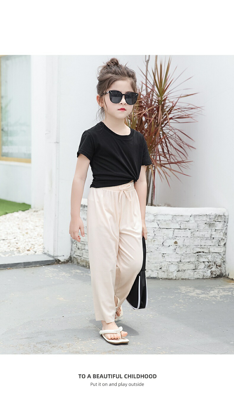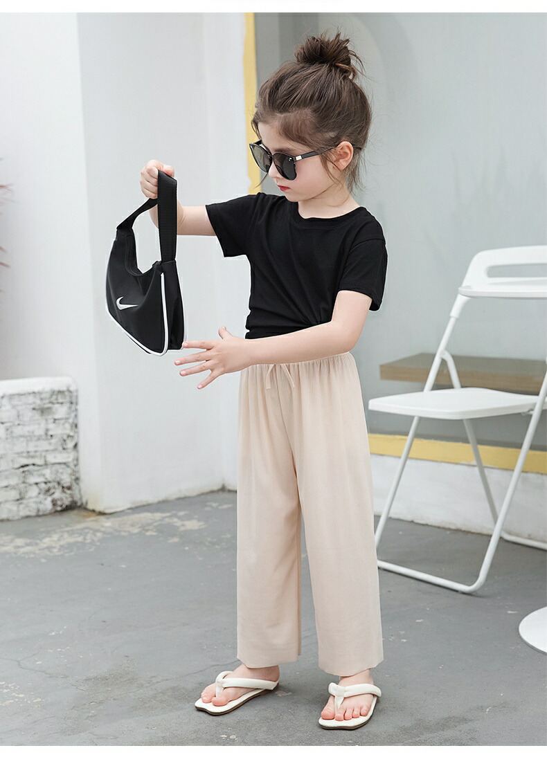 ワイドパンツ 女の子 夏 パンツ リブ キッズ ボトムス パンツ 新作 ピンク ベージュ グリーン パープル ブルー ブラック 100 110 120 130 140 150 160