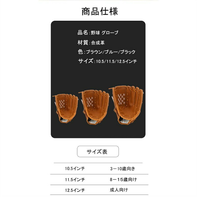 グローブ 野球 軟式 野球グローブ 子 スポーツ アウトドア 新登場! ブラック ブルー ブラウン 10.5インチ 11.5インチ 12.5インチ