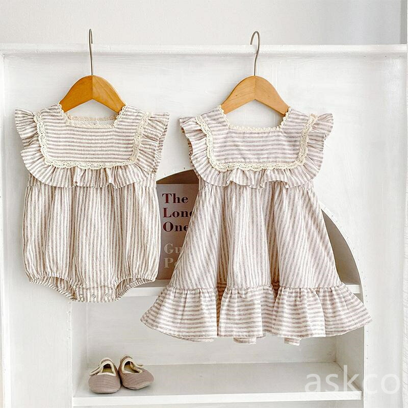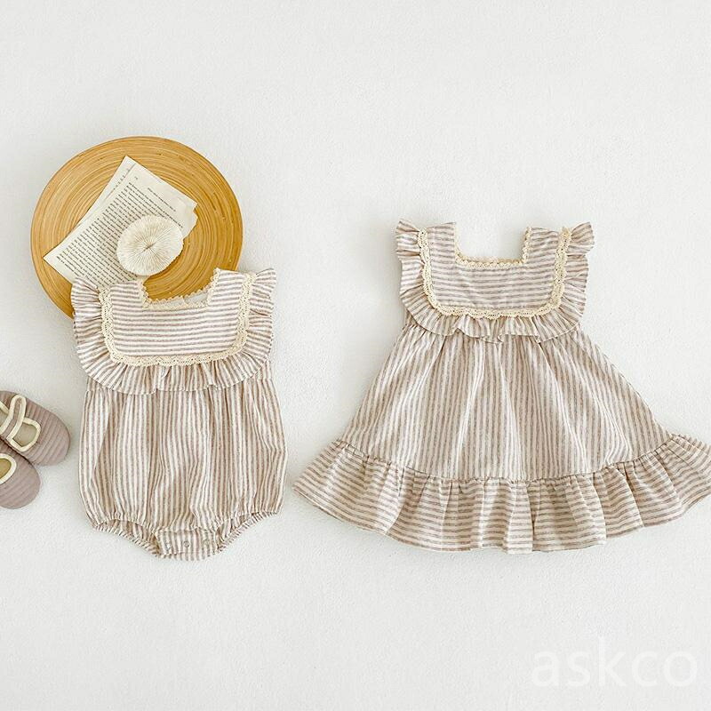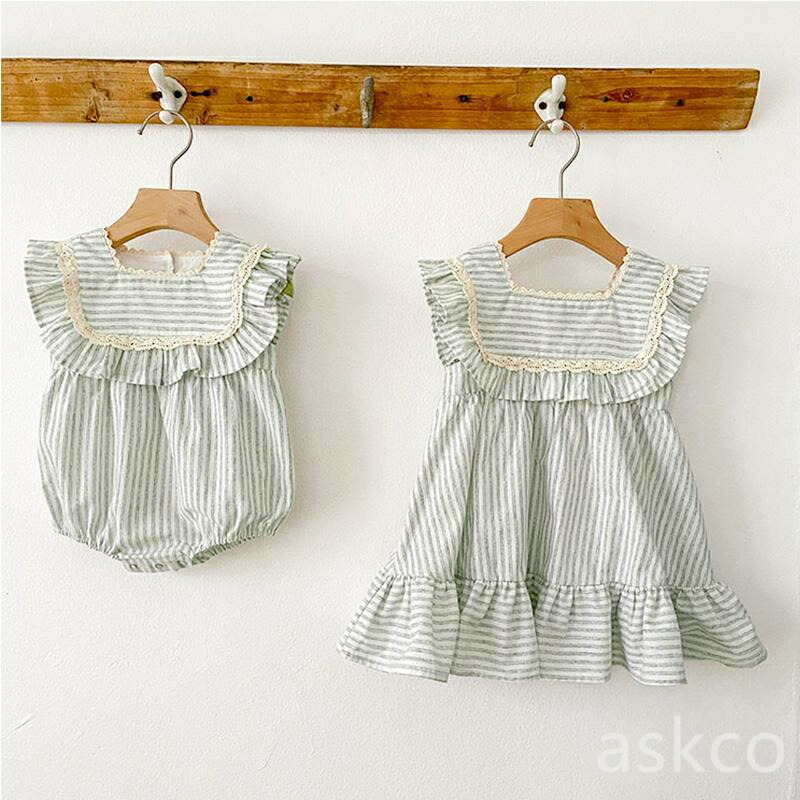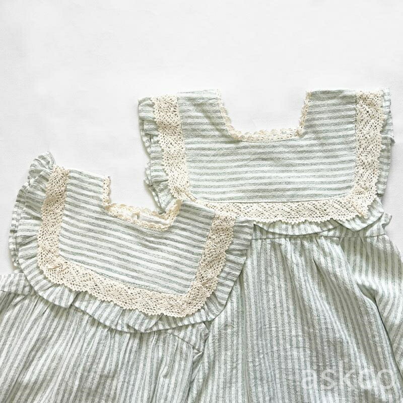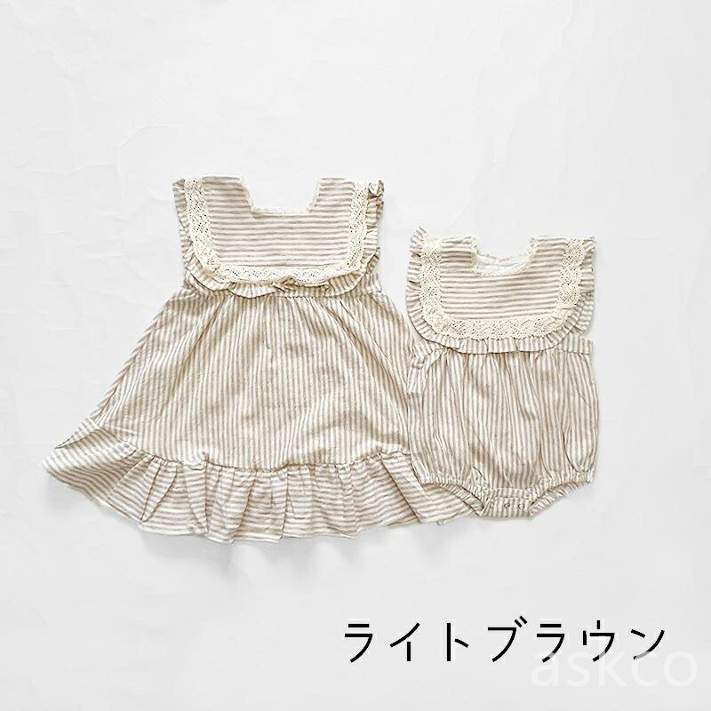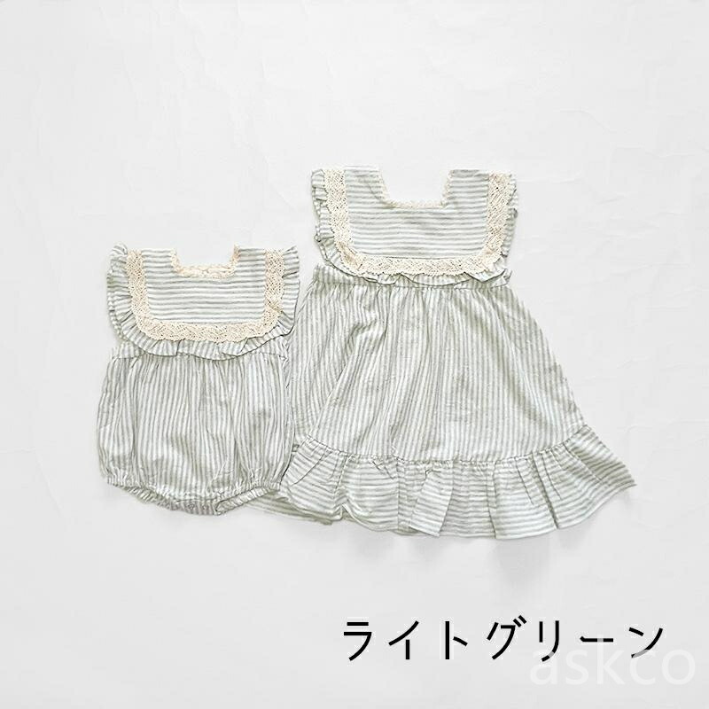 姉妹 お揃い 子供服 ベビー服 女の子 キッズ ベビー マタニティ 人気 ロンパース ワンピース ライトグリーン ライトブラウン