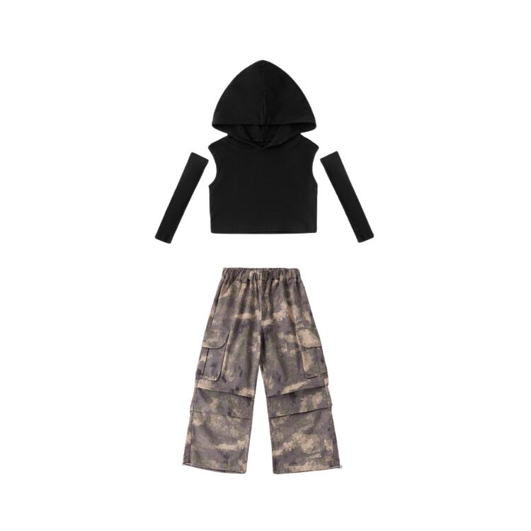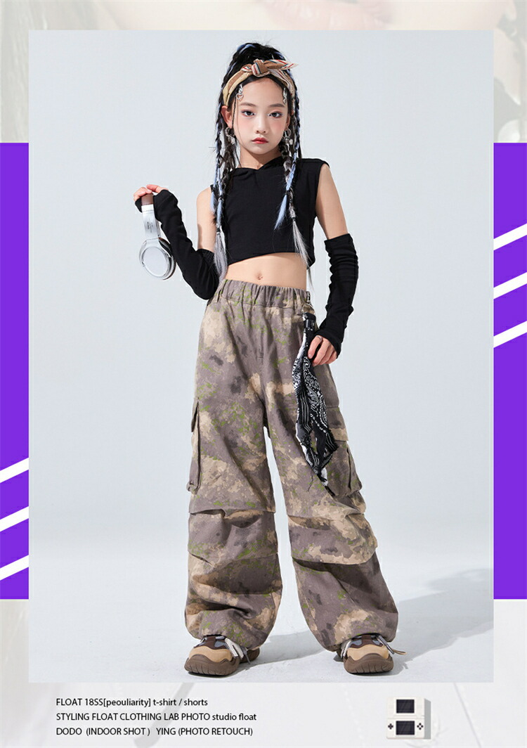 キッズ ダンス 衣装 トップス 黒 へ キッズ ベビー マタニティ 早い者勝ち 110cm 120cm 130cm 140cm 150cm 160cm 170cm 180cm 2点セット 3点セット トップス(袖カバー付き) パンツ