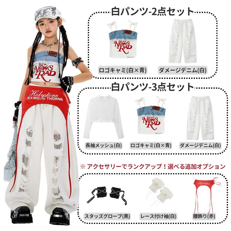 P5倍 ガールズ ダンス 衣装 デニム キッズ スーツ カジュアルセットアップ カジュアルパンツセット 早い者勝ち 青パンツ-2点セット 青パンツ-3点セット 白パンツ-2点セット 白パンツ-3点セット 灰パンツ-2点セット 灰パンツ-3点セット 黒×赤パンツ-2点セット 黒×赤パンツ-3点セット ロゴキャミ(白×青)-単品 ロゴキャミ(赤×黒)-単品 ダメージデニム(青)-単品 ダメージデニム(白)-単品 パラシュートパンツ(灰)-単品 配色パンツ(黒×赤)-単品 なし グローブ(黒) レース付け袖(黒) レース付け袖(白) レース腰飾り(白) 腰飾り(赤) 腰飾り(黒) パンツチェーン グローブ(黒)+レース腰飾り(白) グローブ(黒)+腰飾り(赤) グローブ(黒)+腰飾り(黒) グローブ(黒)+パンツチェーン レース付け袖(白)+腰飾り(赤) レース付け袖(白)+レース腰飾り(白 レース付け袖(黒)+腰飾り(黒) レース付け袖(黒)+パンツチェーン
