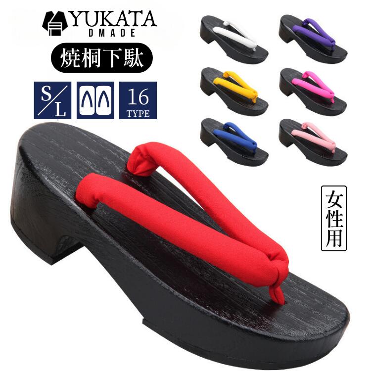 下駄 レディース 厚底 焼き桐下駄 5 レディースファッション 豊富 S(23cm) M(24cm) L(25cm) 茶-白 茶-赤 茶-桃 茶-黒 茶-黄 茶-青 茶-バラ 茶-紫 黒-白 黒-赤 黒-桃 黒-黒 黒-黄 黒-青 黒-バラ 黒-紫