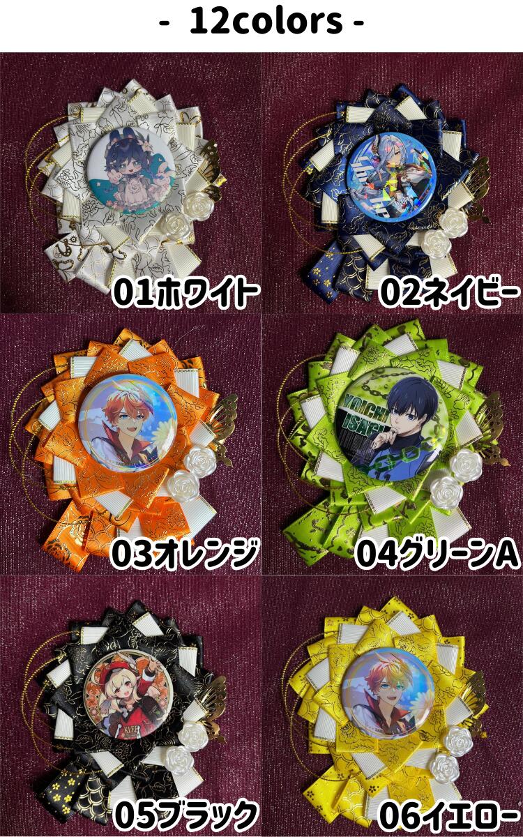 缶バッジロゼット 推し活 バッジ飾り バッグ バッグ用アクセサリー その他 豊富 01ホワイト 03オレンジ 04グリーンA 05ブラック 06イエロー 07レッド 08ピンク 10パープル 11ブルー 12グリーンC