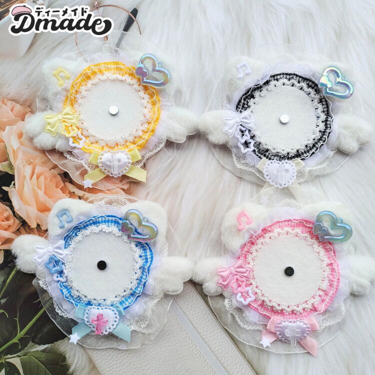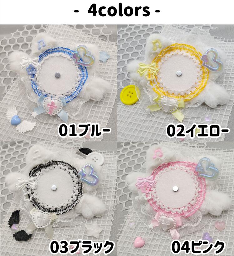 缶バッジロゼット 猫 猫耳 天使 羽翼 バッグ バッグ用アクセサリー その他 早い者勝ち 01ブルー 02イエロー 03ブラック 04ピンク
