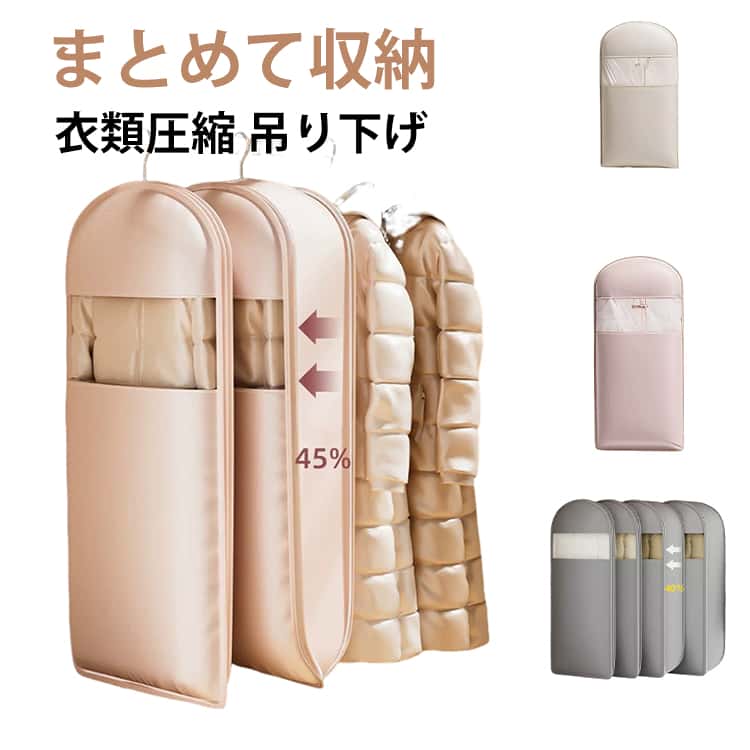 衣類カバー 衣類圧縮袋 収納カバー ダ ベージュ ピンク グレー S M L