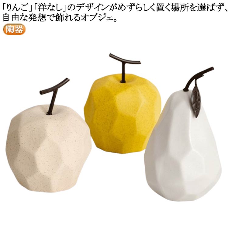 オブジェ インテリア プレゼント 北欧 イエロー ベージュ ホワイト 梨 リンゴ