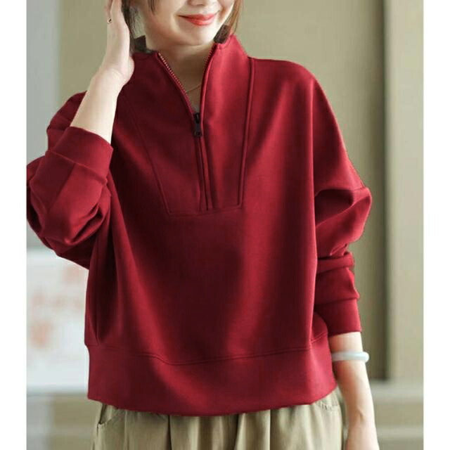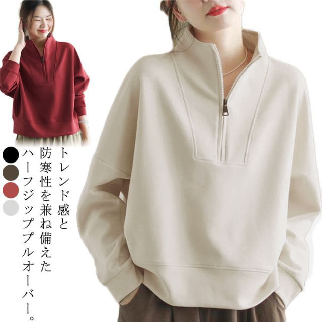 ファスナー 無地 長袖 スウェット パ レディースファッション 新作 コーヒー ブラック レッド ベージュ M L XL 2XL 3XL