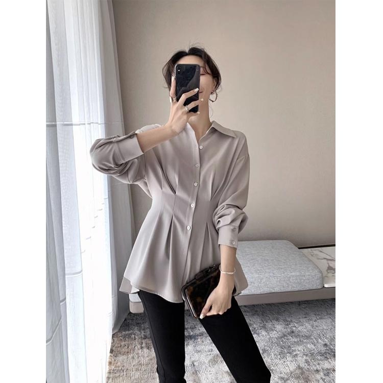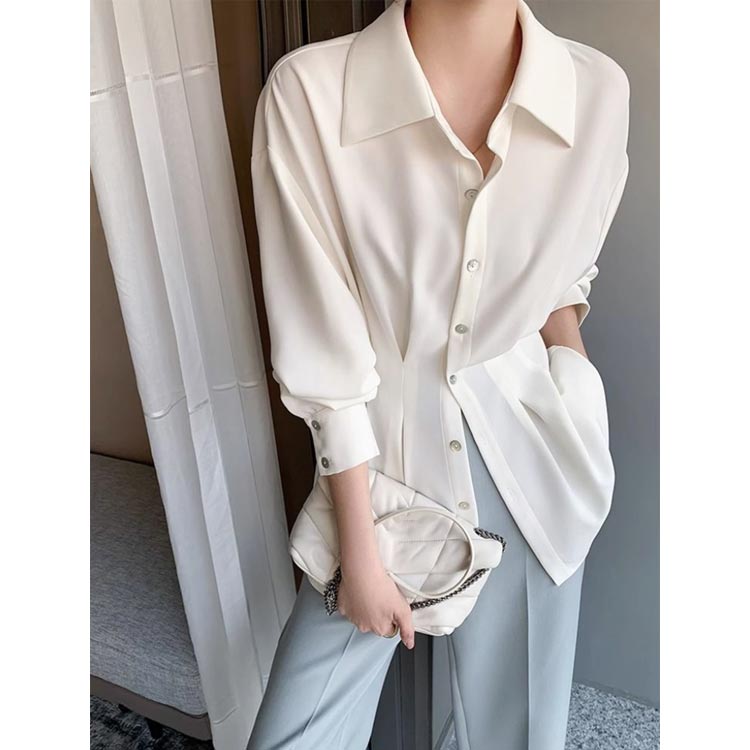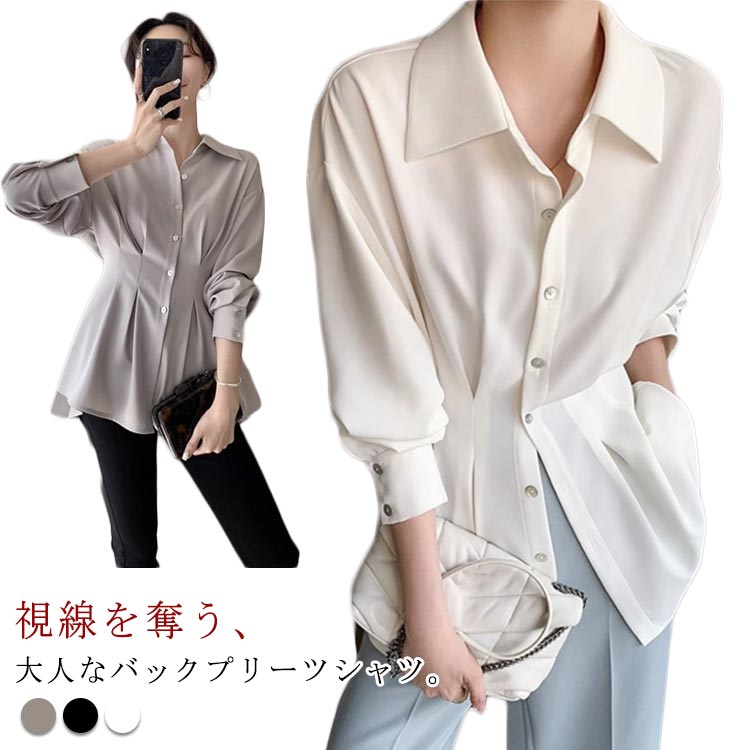 バックプリーツ 冬 長袖 シフォン ブ レディースファッション 続々登場 ホワイト ブラック グレー XS S M L XL