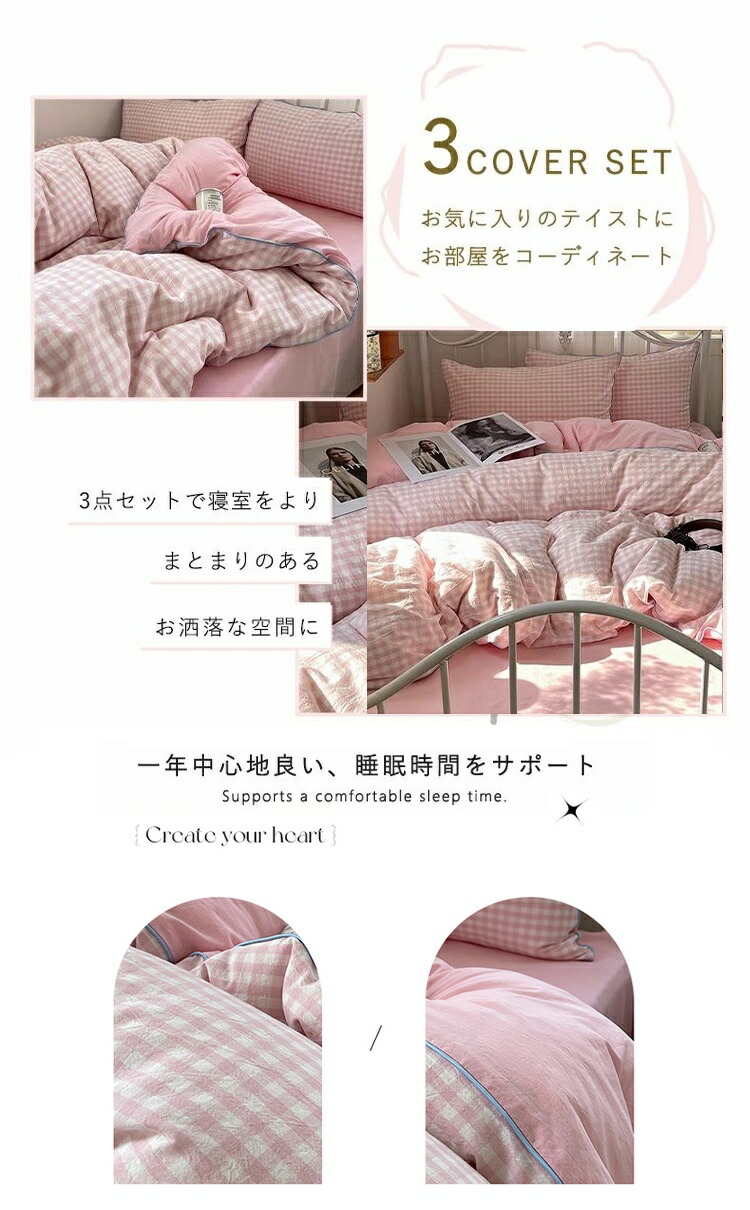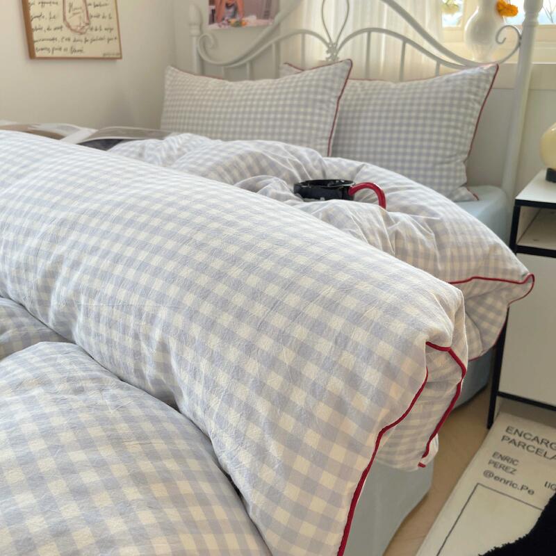 布団カバー 韓国 チェック柄 布団カバ インテリア 寝具 収納 通販 ブルー グリーン ピンク シングル(3点セット) フラットシーツタイプ1.5m フラットシーツタイプ2.0m ボックスシーツタイプ1.5m ボックスシーツタイプ1.8m ボックスシーツタイプ2.0m