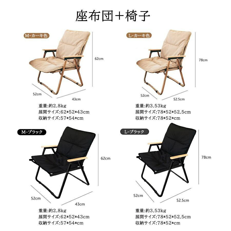 アウトドアチェア 折りたたみ 椅子 L スポーツ アウトドア 豊富な品揃え カーキ ブラック 座布団のみ(椅子なし) 椅子のみ(座布団なし) 座布団+椅子