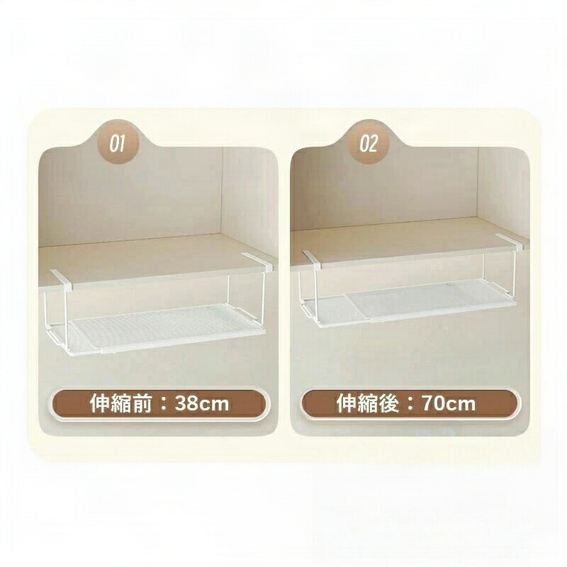 吊り戸棚下キッチンラック シンク下収納 ホワイト ブラック S M