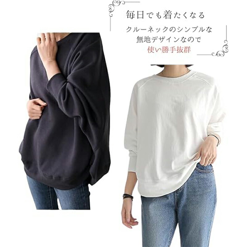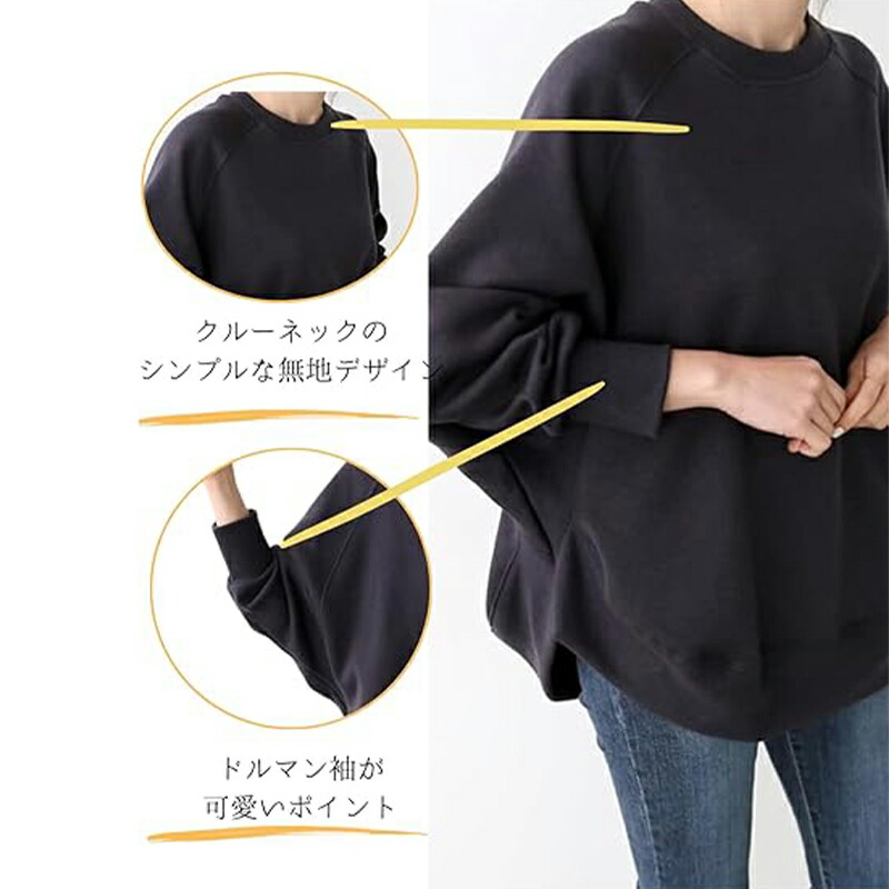 トレーナー レディース ゆったり 大きいサイズ 体型カバー ドルマン シンプル スウェット 長袖 無地 セーター ビッグシルエット 上 春 冬 春秋 春服 秋