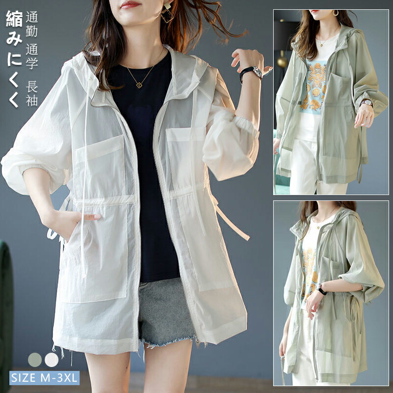 パーカー レディース 薄手 フード付き レディースファッション 早い者勝ち グリーン ホワイト M L XL 2XL 3XL