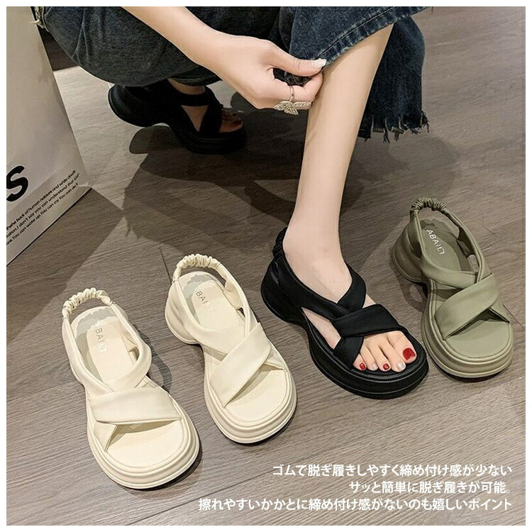 厚底 サンダル レディース 軽量 ビー レディース靴 サンダル コンフォートサンダル 早い者勝ち アイボリー ブラック グリーン 35(内寸22.5cm) 36(内寸23cm) 37(内寸23.5cm) 38(内寸24cm) 39(内寸24.5cm) 40(内寸25cm)