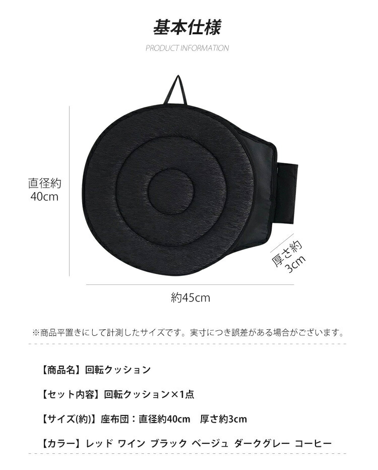 回転クッション 車用 シートクッション レッド ブラック ダークグレー コーヒー ワイン ベージュ