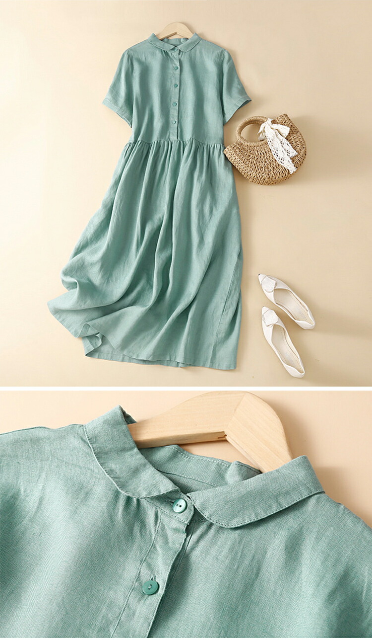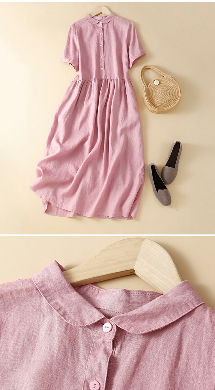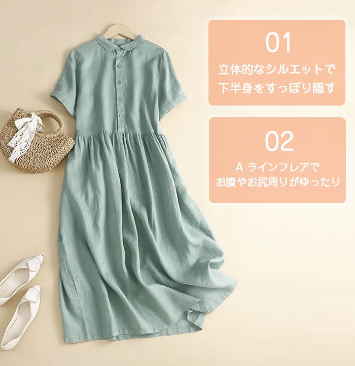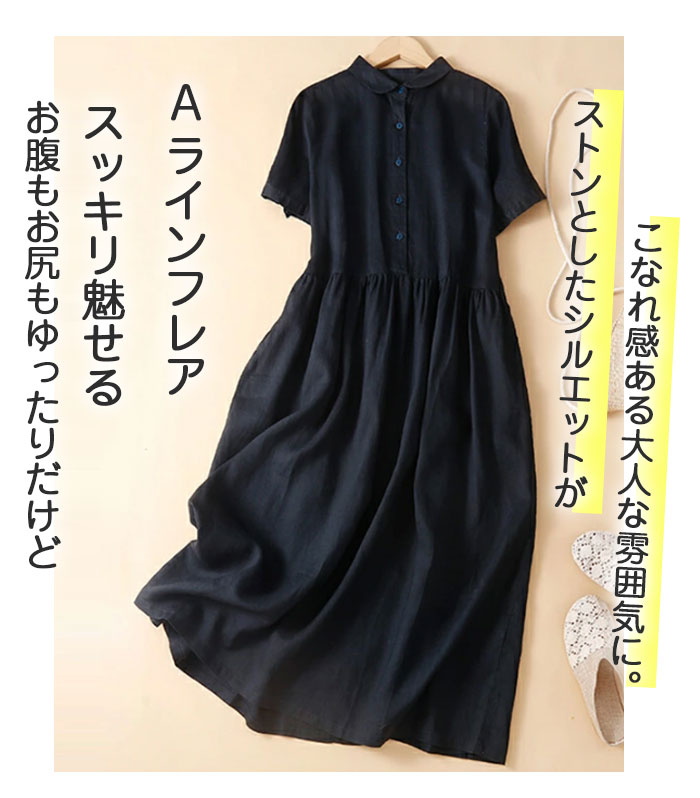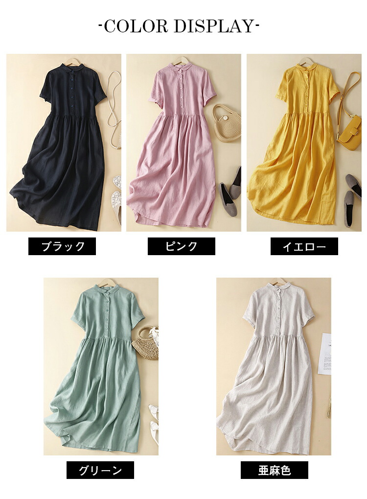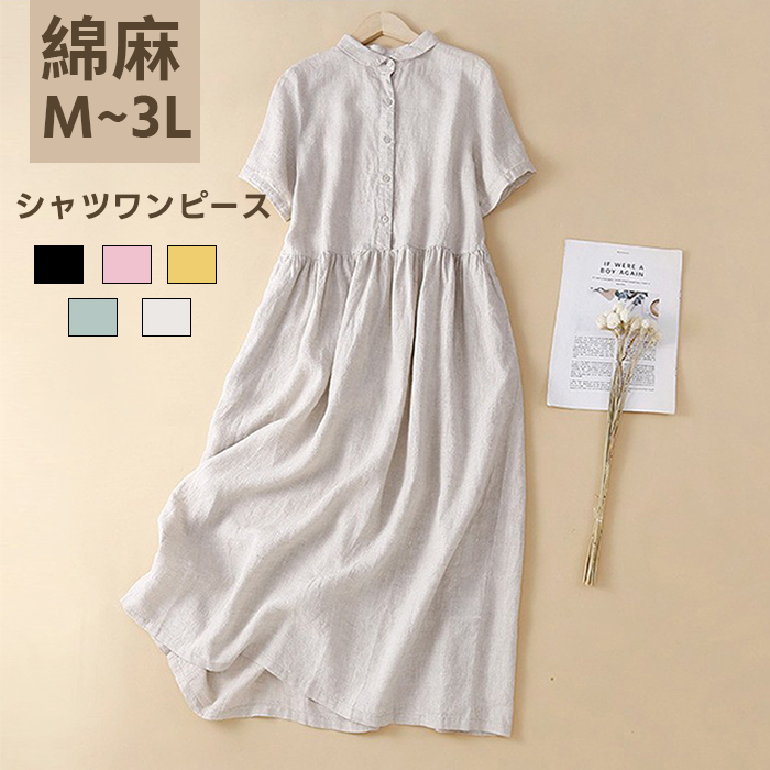 ワンピース シャツワンピース カットソ M L 2L 3L ブラック ピンク グリーン イエロー 亜麻色