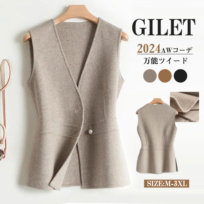 ジレ ベスト レディース ショート丈 トップス ベスト 豊富 M L XL 2XL 3XL ブラック クリーム キャメル