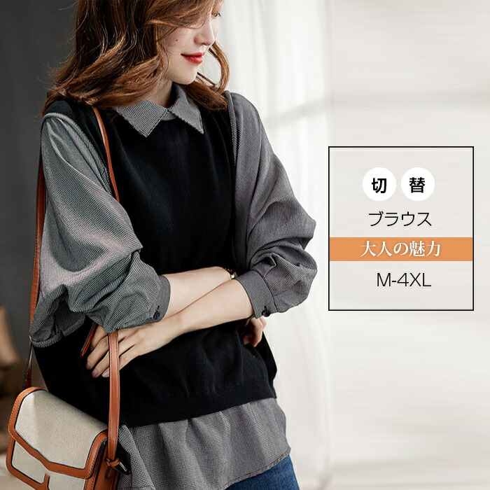チュニック シャツ 切替 ブラウス レ レディースファッション 早い者勝ち M L XL 2XL 3XL 4XL