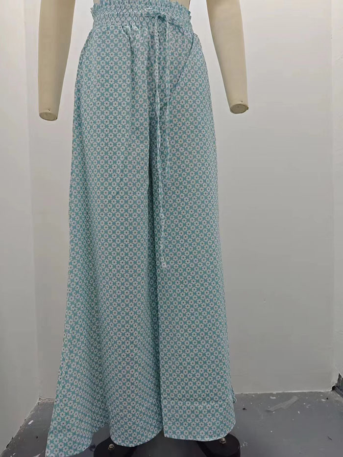 ワイドパンツ レディース 夏 春夏 ボトムス パンツ ウェストゴム 涼感素材 レディース長ズボン ガウチョパンツ ロング丈 ゴム 総柄 体型カバー 脚長 ハイウエスト ゆったり 着痩せ 美 薄手