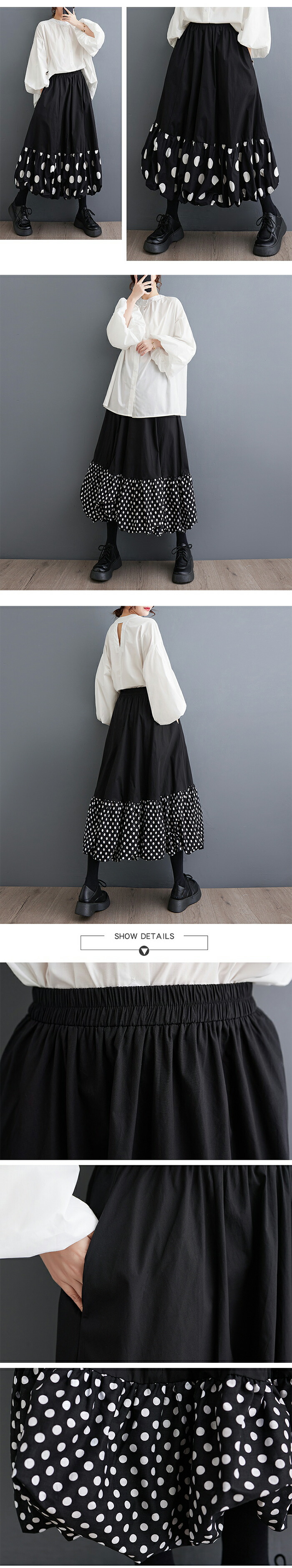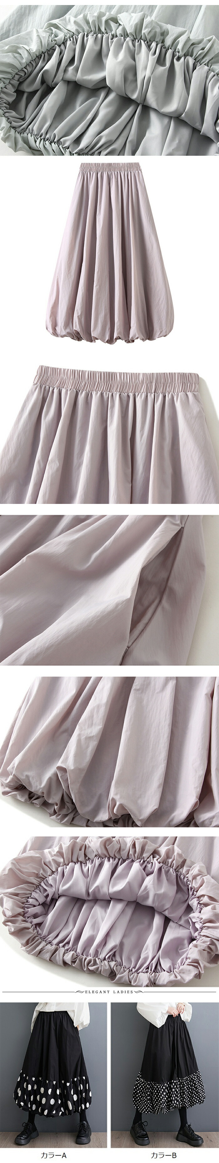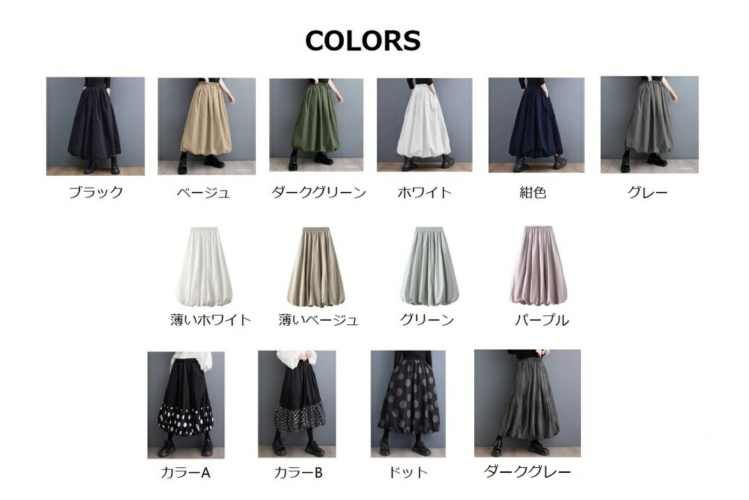スカート ロング レディース 黒 大き ボトムス スカート 通販 ブラック グレー ドット ダークグリーン 紺色 ホワイト ベージュ カラーA カラーB 薄いベージュ 薄いホワイト グリーン パープル ダークグレー