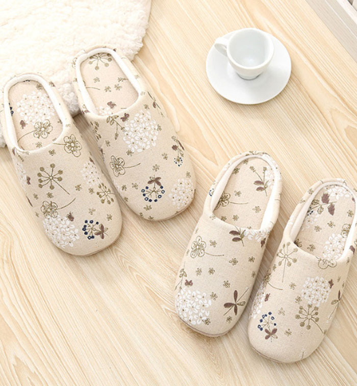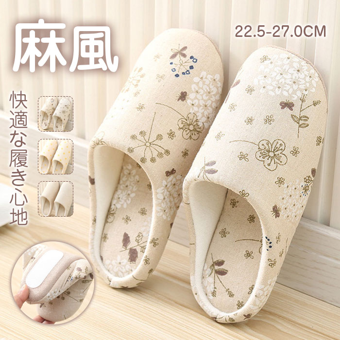 スリッパ ルームシューズ 綿麻 北欧 日用品雑貨 文房具 手芸 特集 22.5-23cm 23.5-24cm 24.5-26cm 26-27cm 白い花柄 黄色い花柄 草花柄