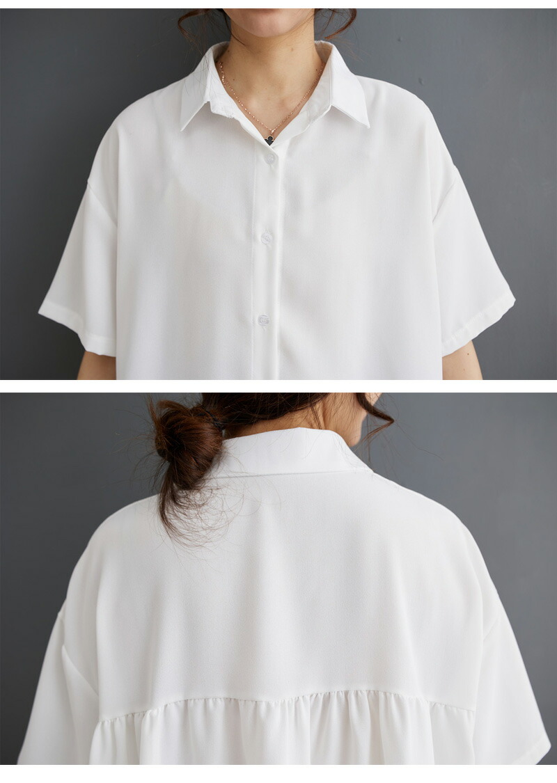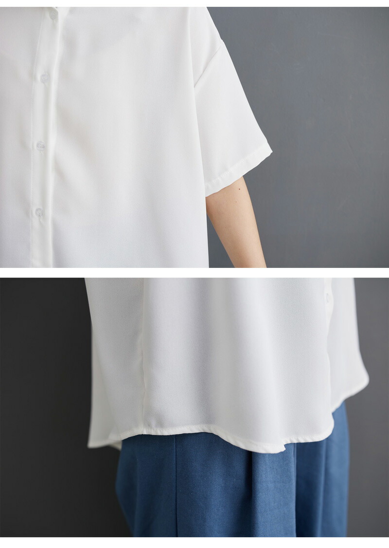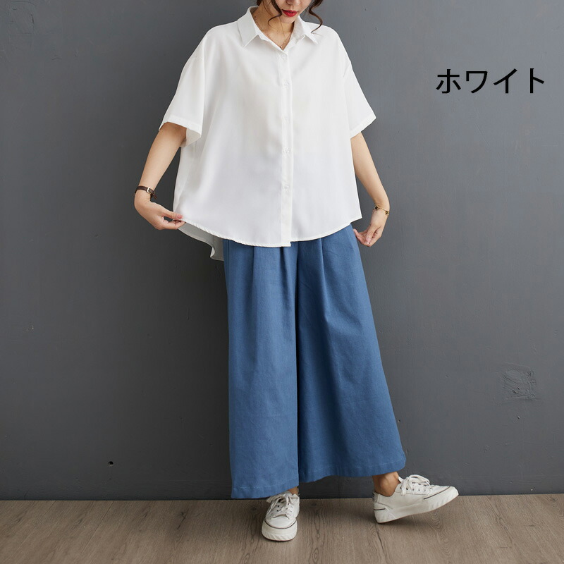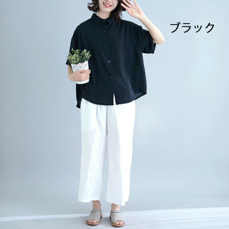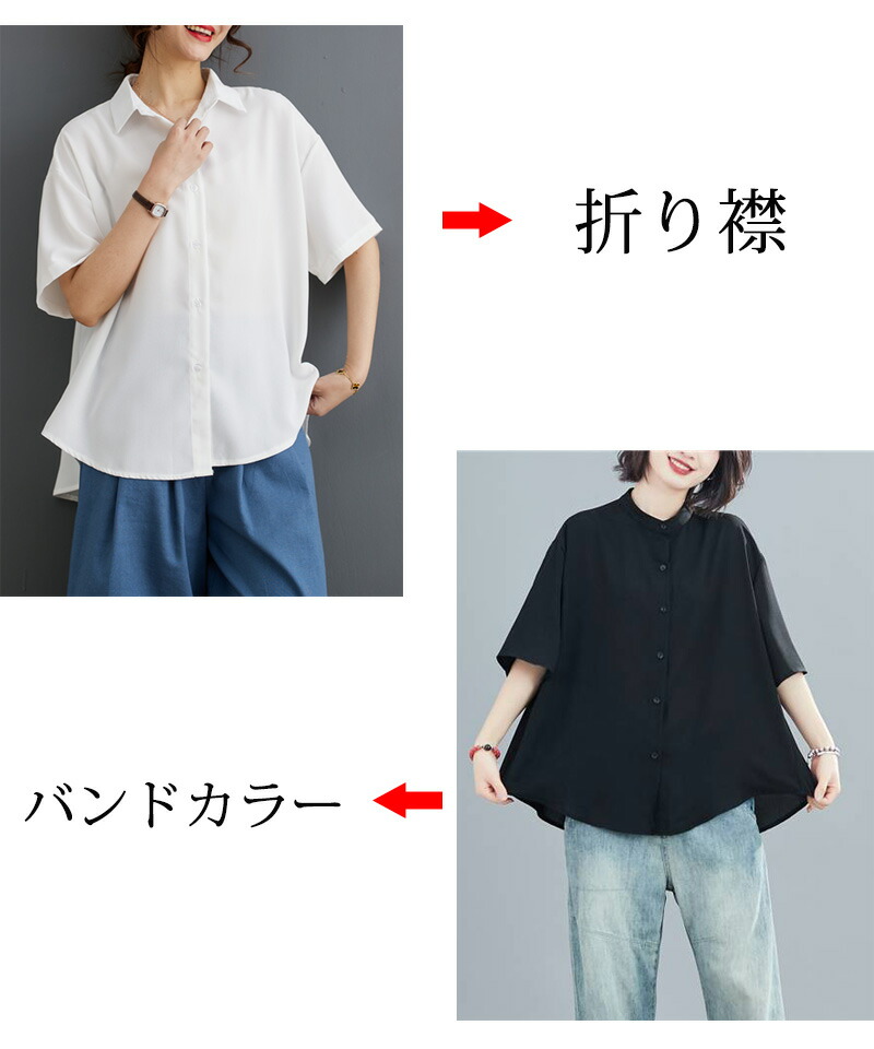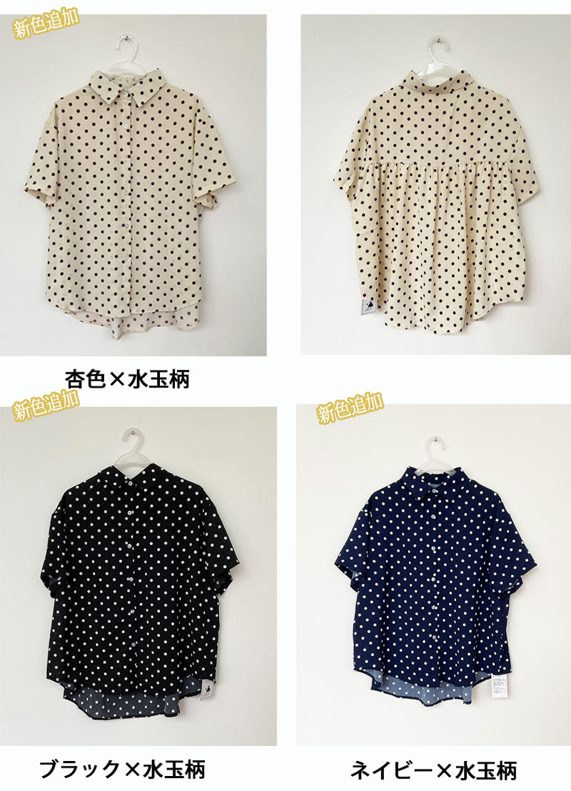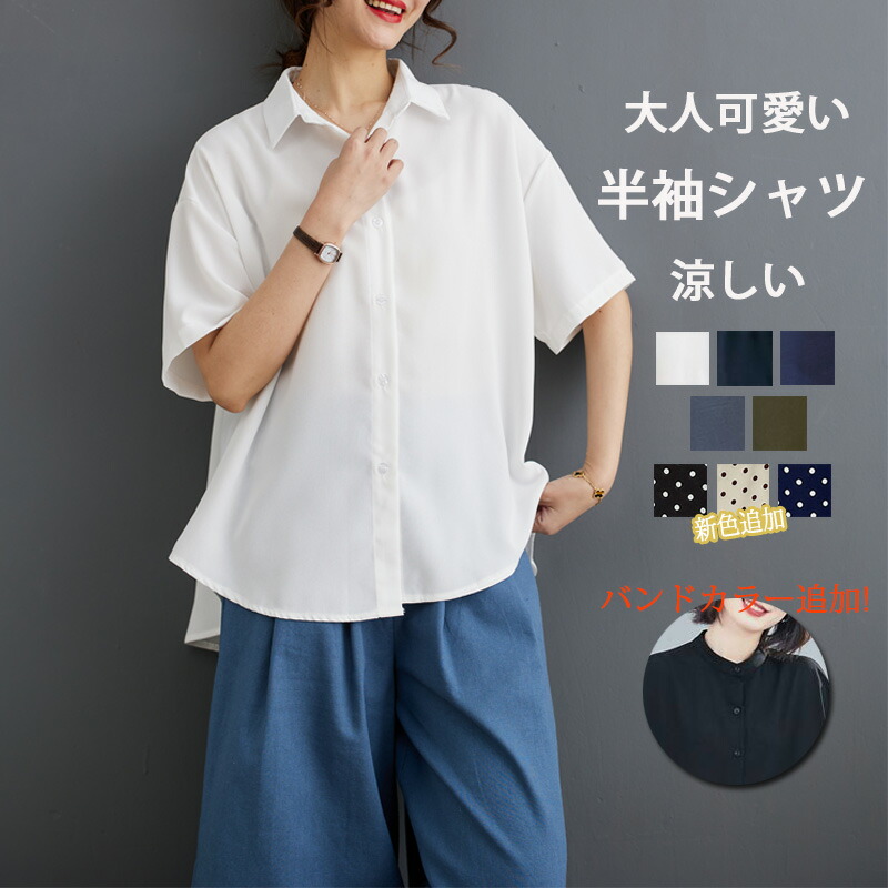 20%OFF 半袖シャツ シャツ チュ チュニック 早い者勝ち 折り襟 バンドカラー ブラック ホワイト ネイビー グレーブルー カーキグリーン ブラック×水玉柄 杏色×水玉柄 ネイビー×水玉柄