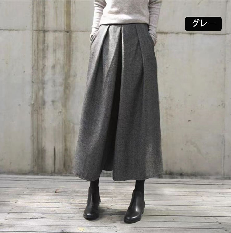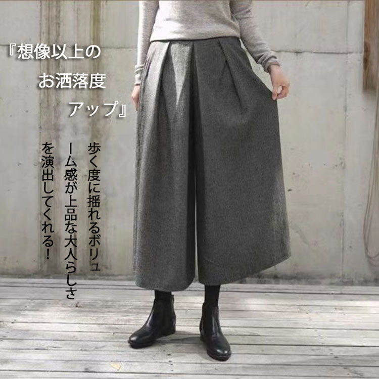 春まで穿ける ワイドパンツ ガウチョパ レディースファッション 早い者勝ち グレー ブラック 新柄 M L XL