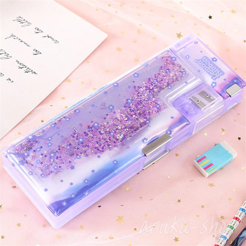 スパンコール流砂筆箱 両面 箱型 ペン 文房具 事務用品 筆記具 ペンケース 通販 1 2 3 4 5 6