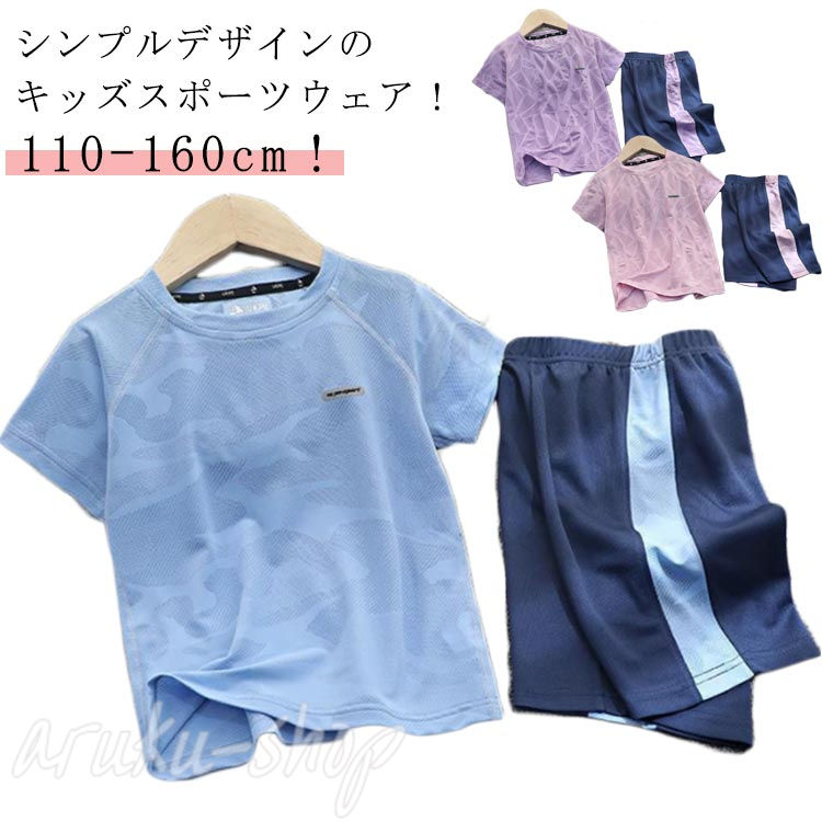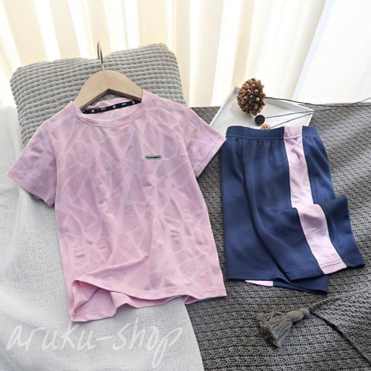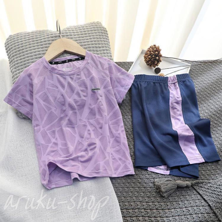 キッズ スポーツウェア セットアップ キッズ トップス Tシャツ カットソー 続々登場 パープルセット ピンクセット ブルーセット 110 120 130 140 150 160