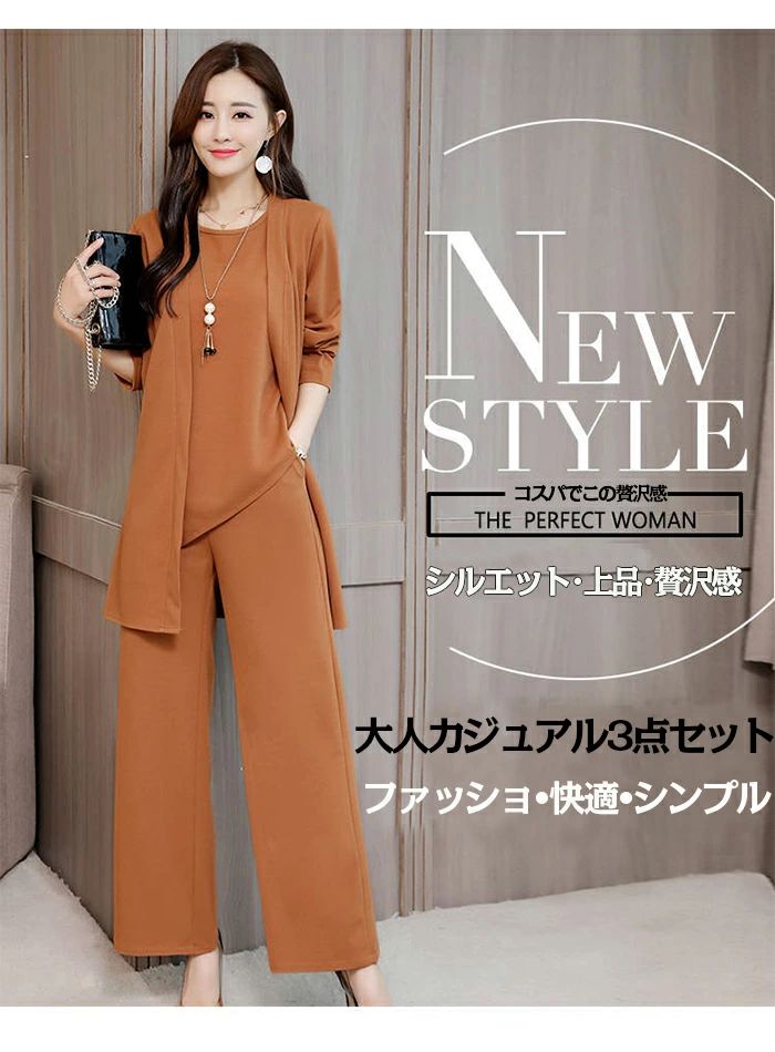 品良く大人カジュアルに パンツスーツ スーツ セットアップ パンツスーツ 通販 ブラック ブラウン レッド M L XL 2XL 3XL